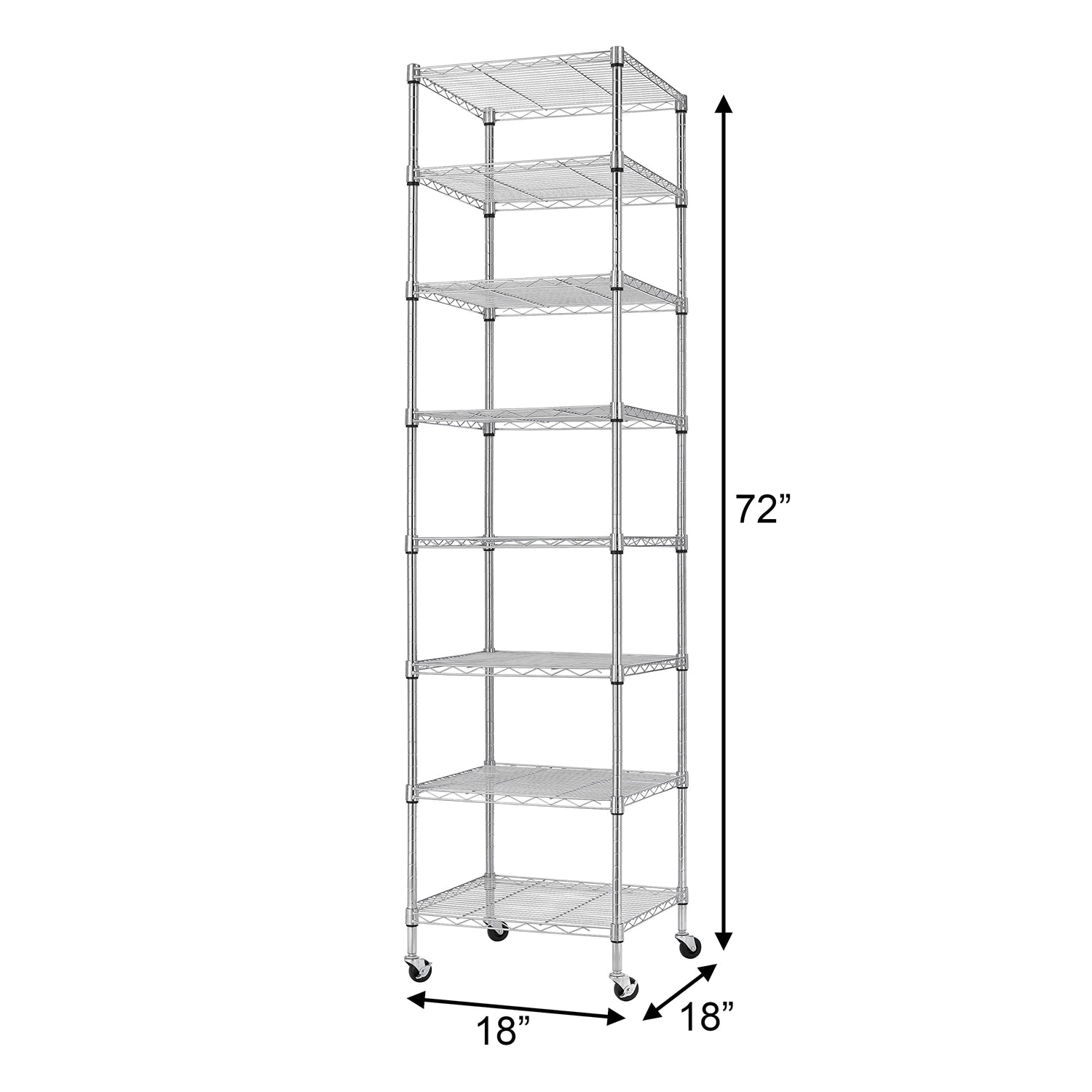 Finnhomy Heavy Duty 8 Tier Wire Shelving with Wheels 18x18x72.8-inches 8 Shelves Storage Rack Thicken Steel Tube, Pantry Shelves for Storage,