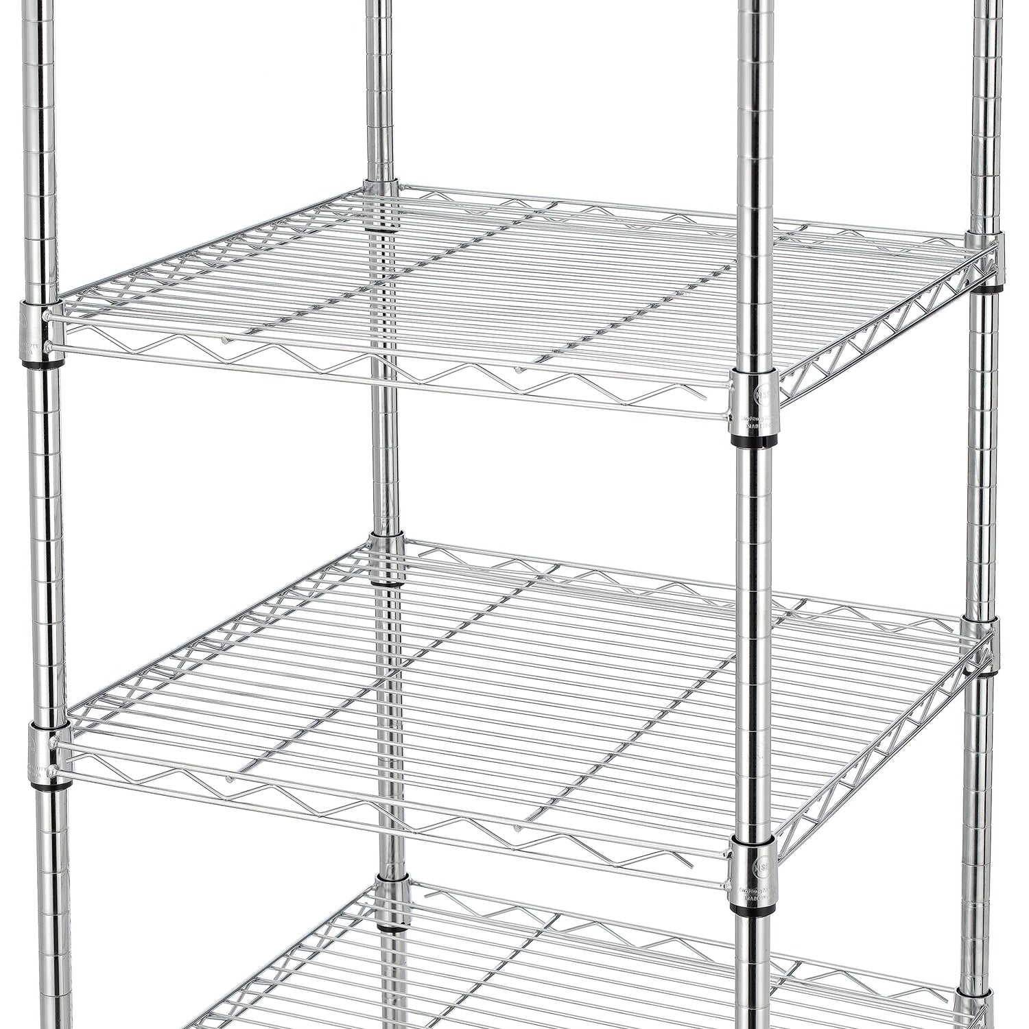 - RELIABLE & STURDY CONSTRUCTION - NSF Certified to ensure the quality. This wire shelving have total 300 lbs loading capacity with wheels (evenly distributed), perfect for home use. Wire shelves adjustable in 1-inches to meet your different storage needs.