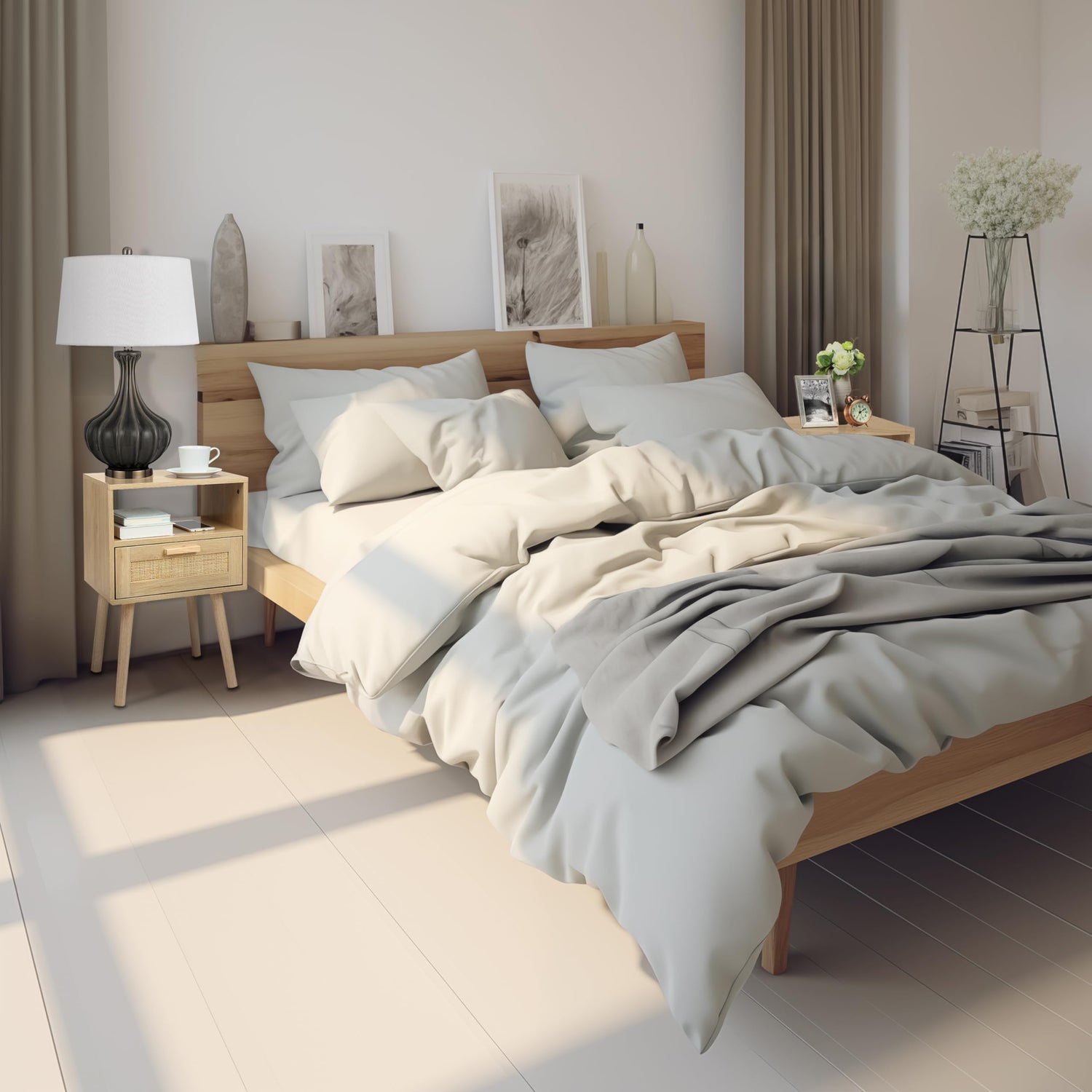 Finnhomy Nightstands Set of 2, End Table, Nightstand, Side Table with Hand Made Rattan Decorated Drawers, Wood Accent Table with Storage for Bedroom, Natural