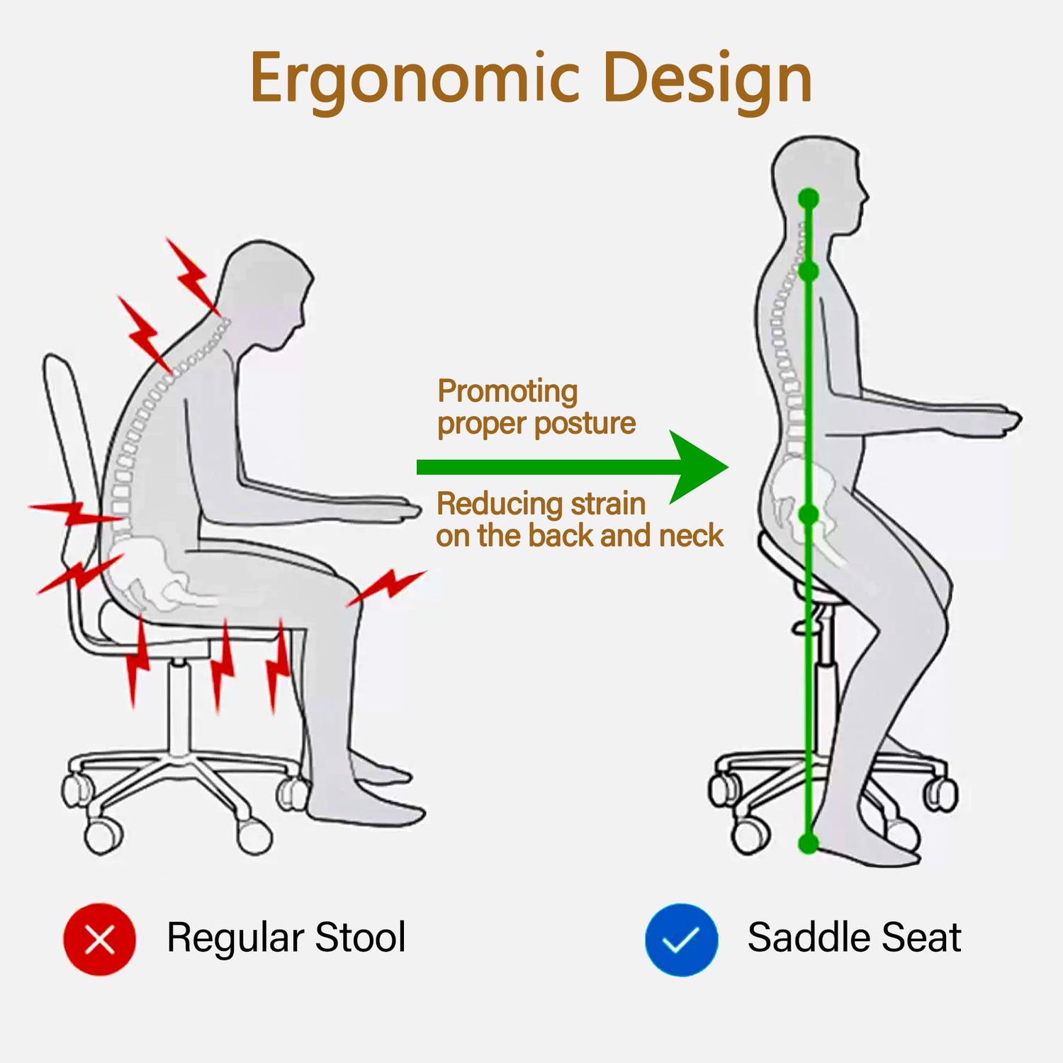 - 【Ergonomic Design】The saddle-shaped rolling chair is meticulously crafted to conform to the natural curves of the body, promoting proper posture and reducing strain on the back and hip, further enhancing comfort and usability.