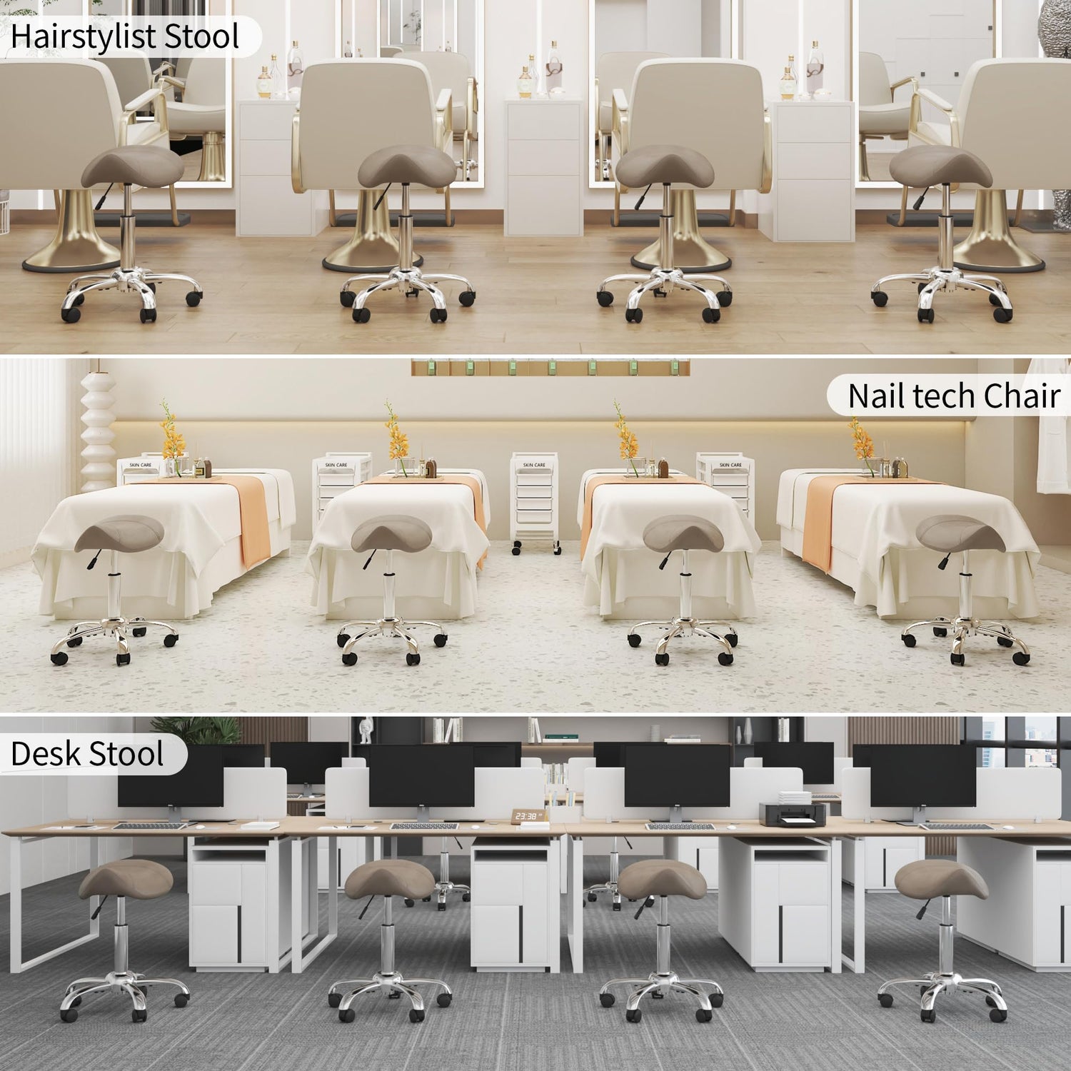 - 【Widely Used】Suitable for hair salons, beauty parlors, clinics, and studios where prolonged standing is required. This rolling stool is the ideal choice for professionals such as stylist, artist, dentist, and engineers.