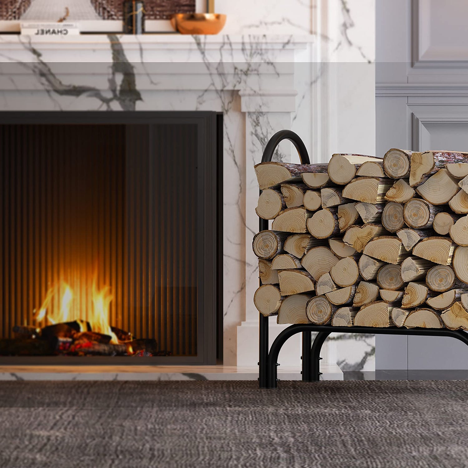 Fire Beauty Firewood Rack Log Holder,Log Storage Holder,Storage Rack,Firewood Stacker for Fireplace Indoor Outdoor(Middle)