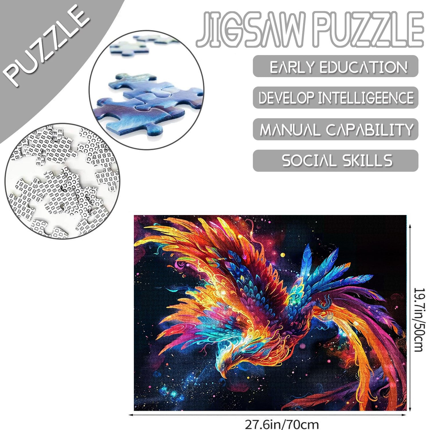 - What You Get: A sturdy color box include 1000 pieces puzzle and a HD print poster. Finished size: 27.56" x 19.69"/70*50cm.