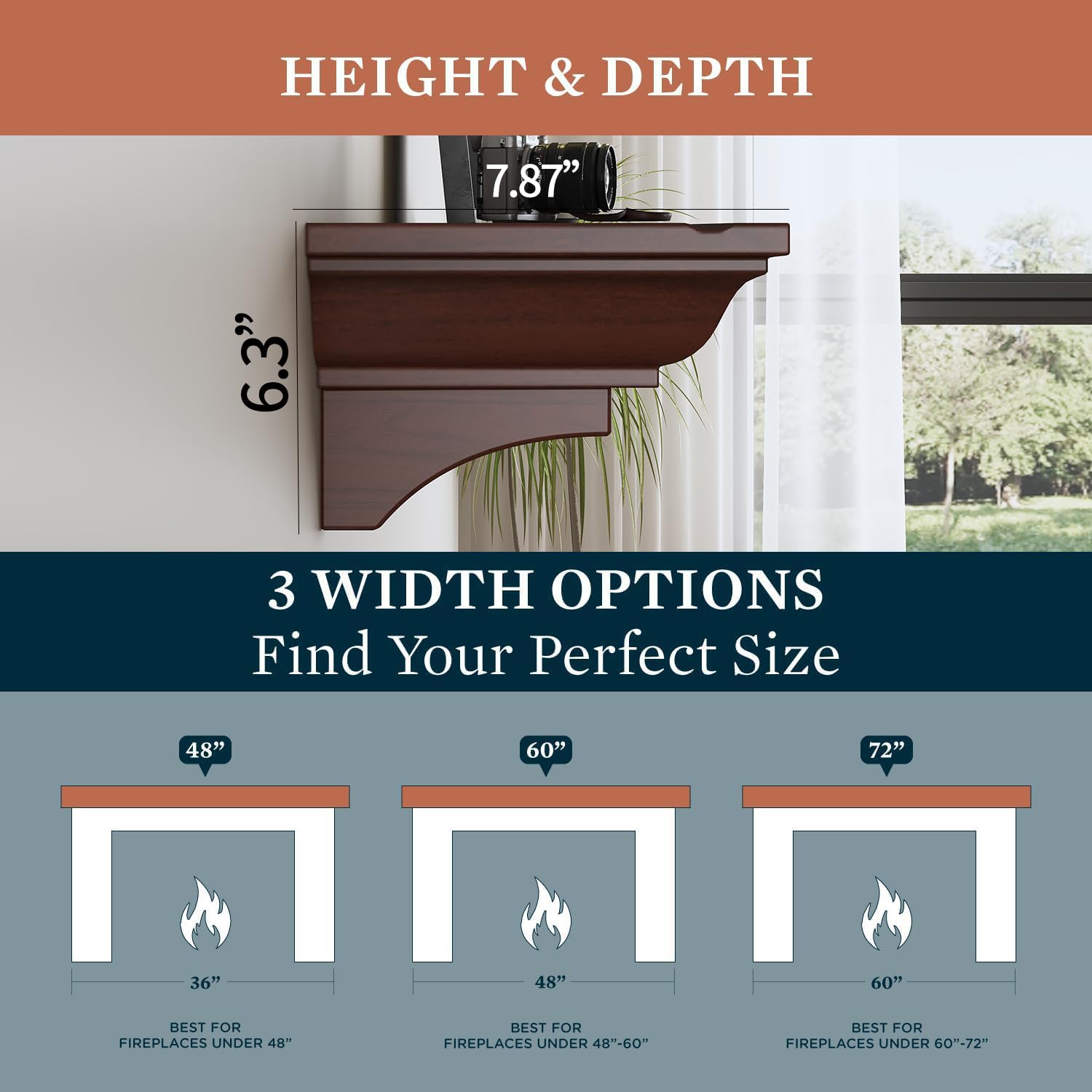 • Stylish Design: With rustic charm and elegance, our fire place mantel are ideal for displaying photos, trophies, or art. They seamlessly fit both traditional and modern interiors while protecting the space above your fireplace from heat and smoke damage