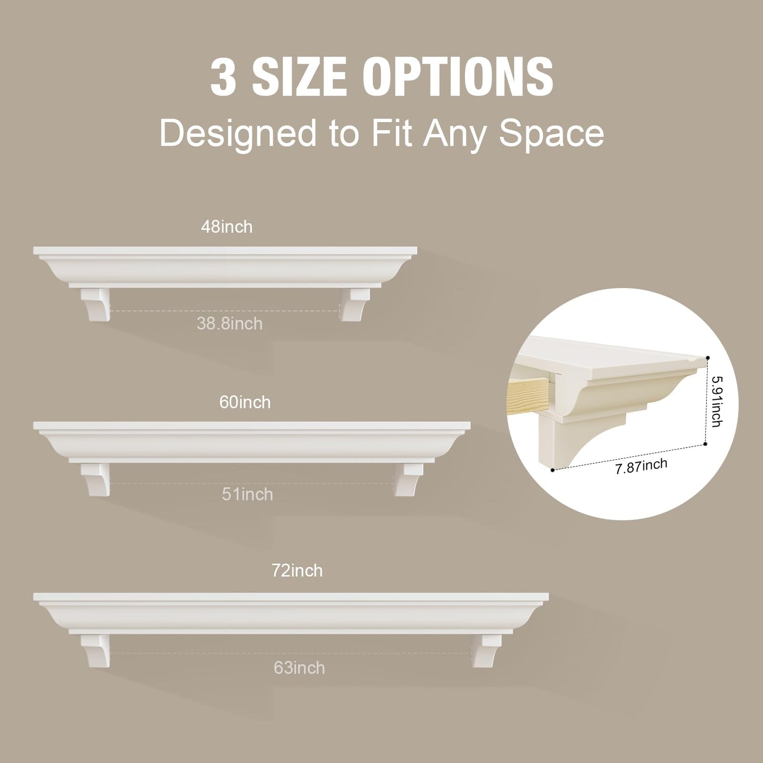 - Spacious Display Area: This 60-inch long, 7.87-inch deep, and 5.19-inch high mantel shelf provides ample space to showcase your favorite decor items. Enhance your living room or bedroom while keeping your treasures organized and beautifully displayed