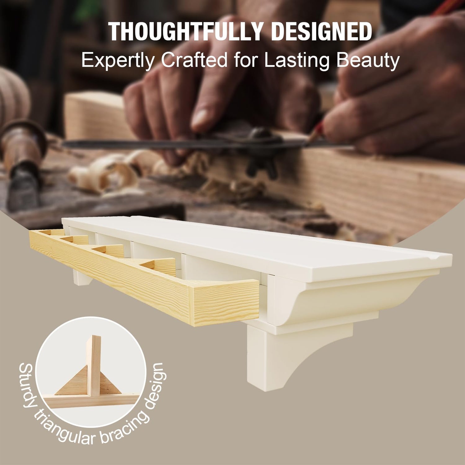 - Easy to Install: Designed with a hollow construction, our wood mantles for over fireplace is lightweight and includes hidden wood brackets. All necessary hardware, including screws and wall anchors, is provided for quick and easy installation on flat walls