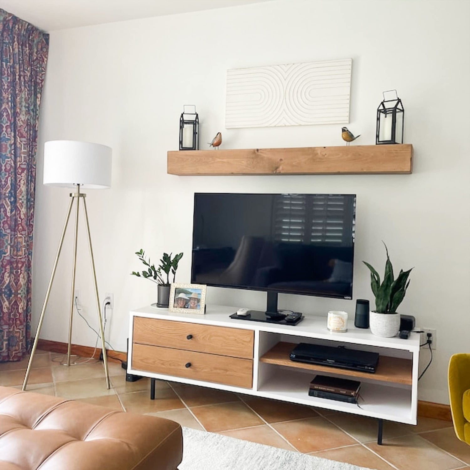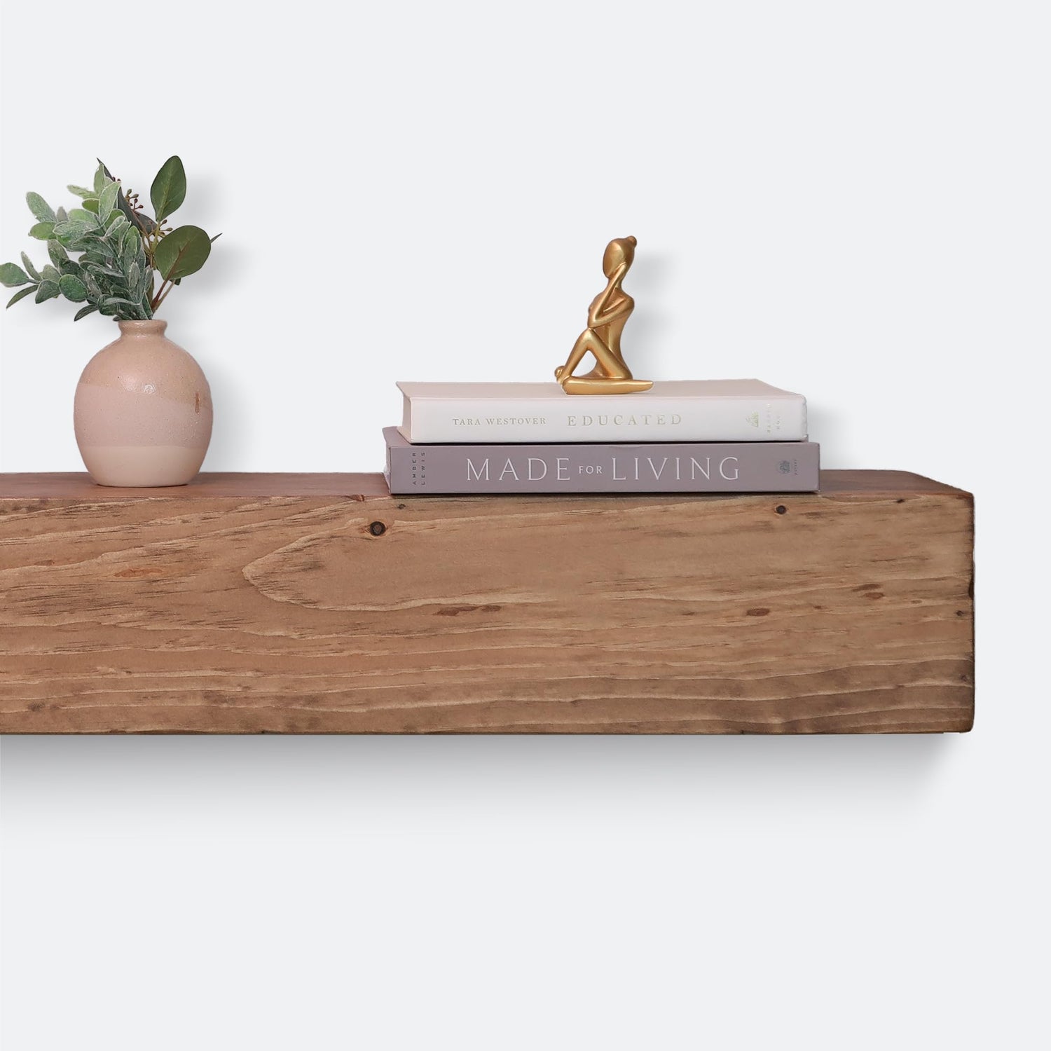 Fireplace Mantel, Rustic, Shelf, Floating Mantle, Real Wood, Beam, URBANDI (Brown, 60Lx6Hx8D)