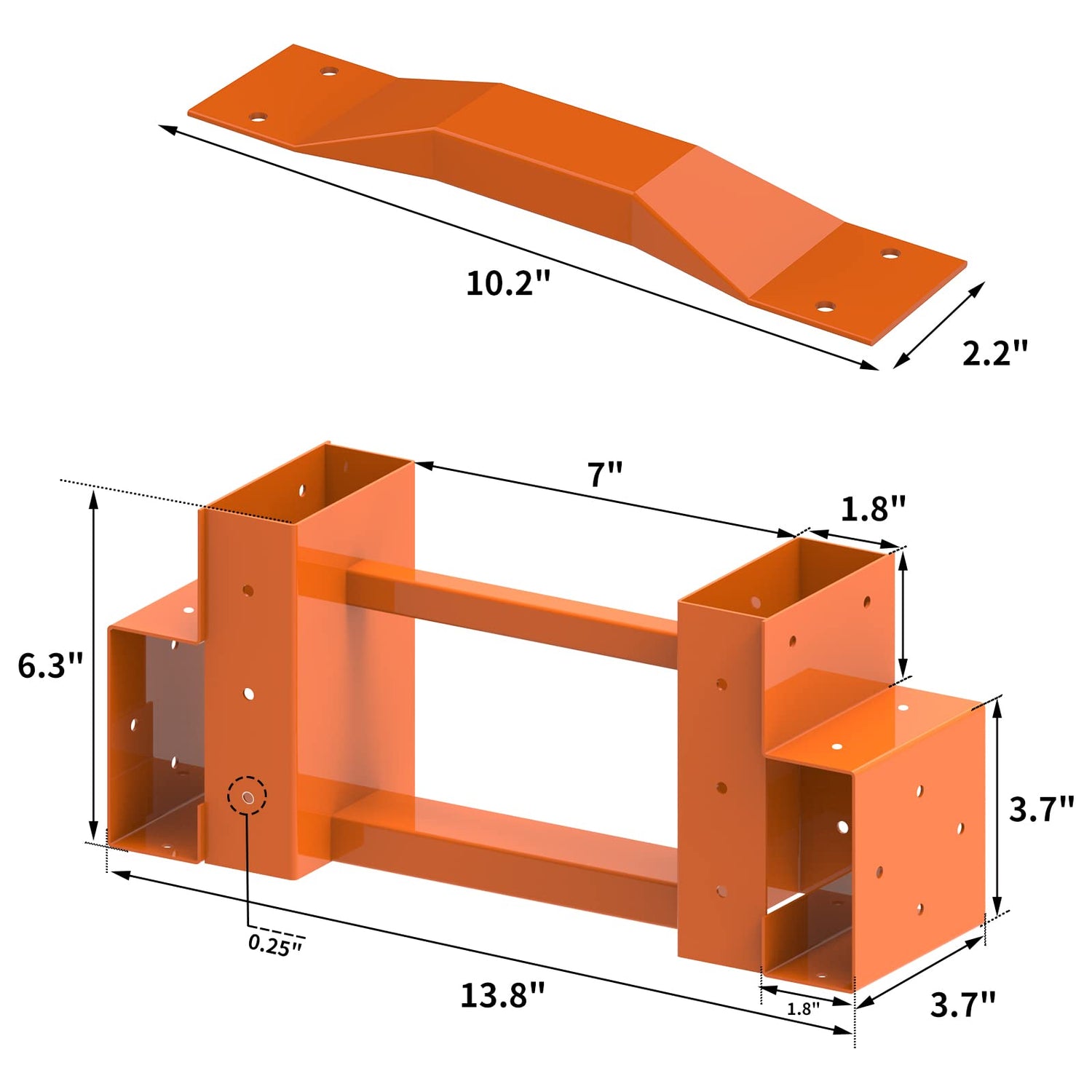 - What you will get ? - 2 Packs of firewood log brackets,2 connectors. Measurement: 13.8” x 3.7” x 6.3”, and 30 screws. Fits for 4x2s (Actual 9x4cm ) lumbers. *Lumber NOT included.