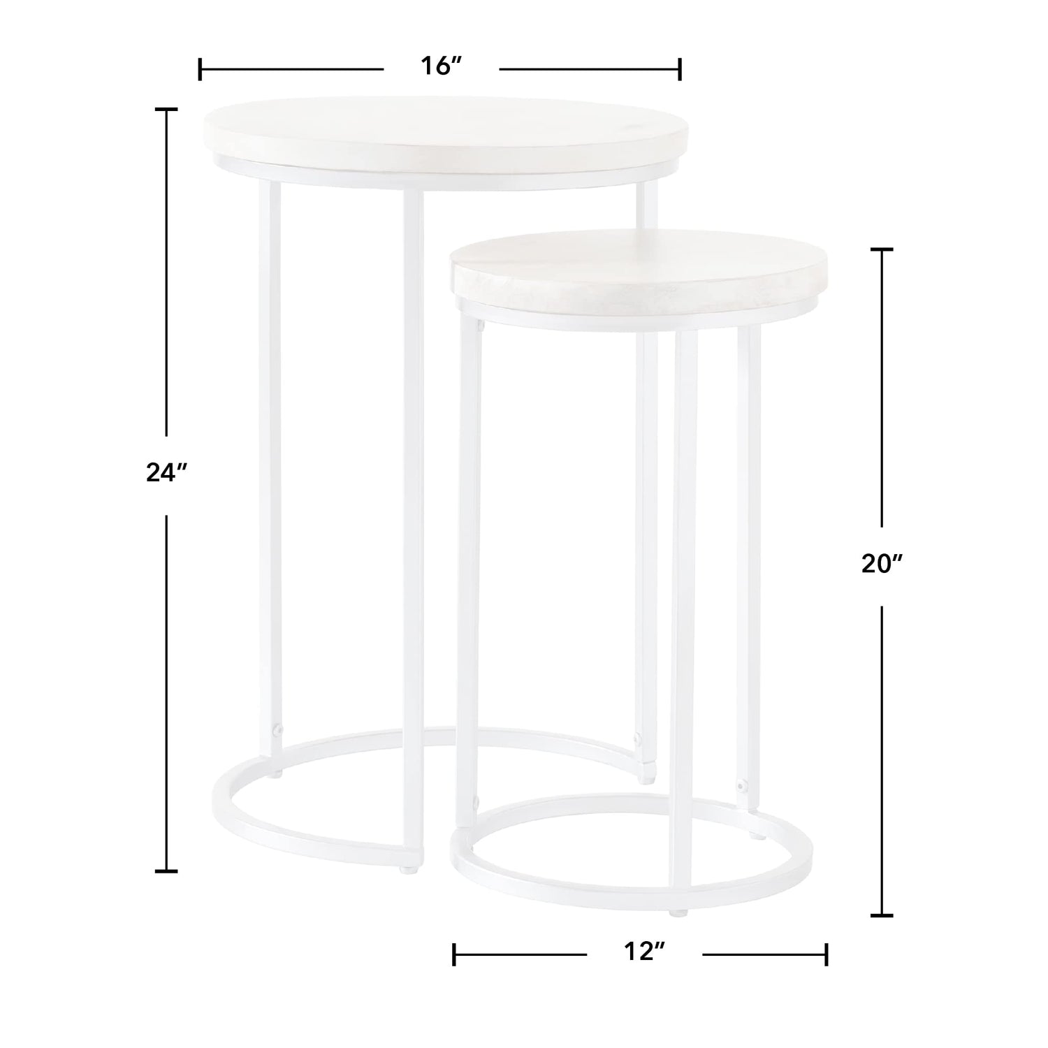 - SIZE MATTERS - Our FirsTime & Co. Natural Isla Nesting End Table 2-Piece Set has a 24" height, 16" width, and 16" length for the larger table and a 20" height, 12" width, and 12" length for the smaller table making it the perfectly sized end table for any living, home or office space