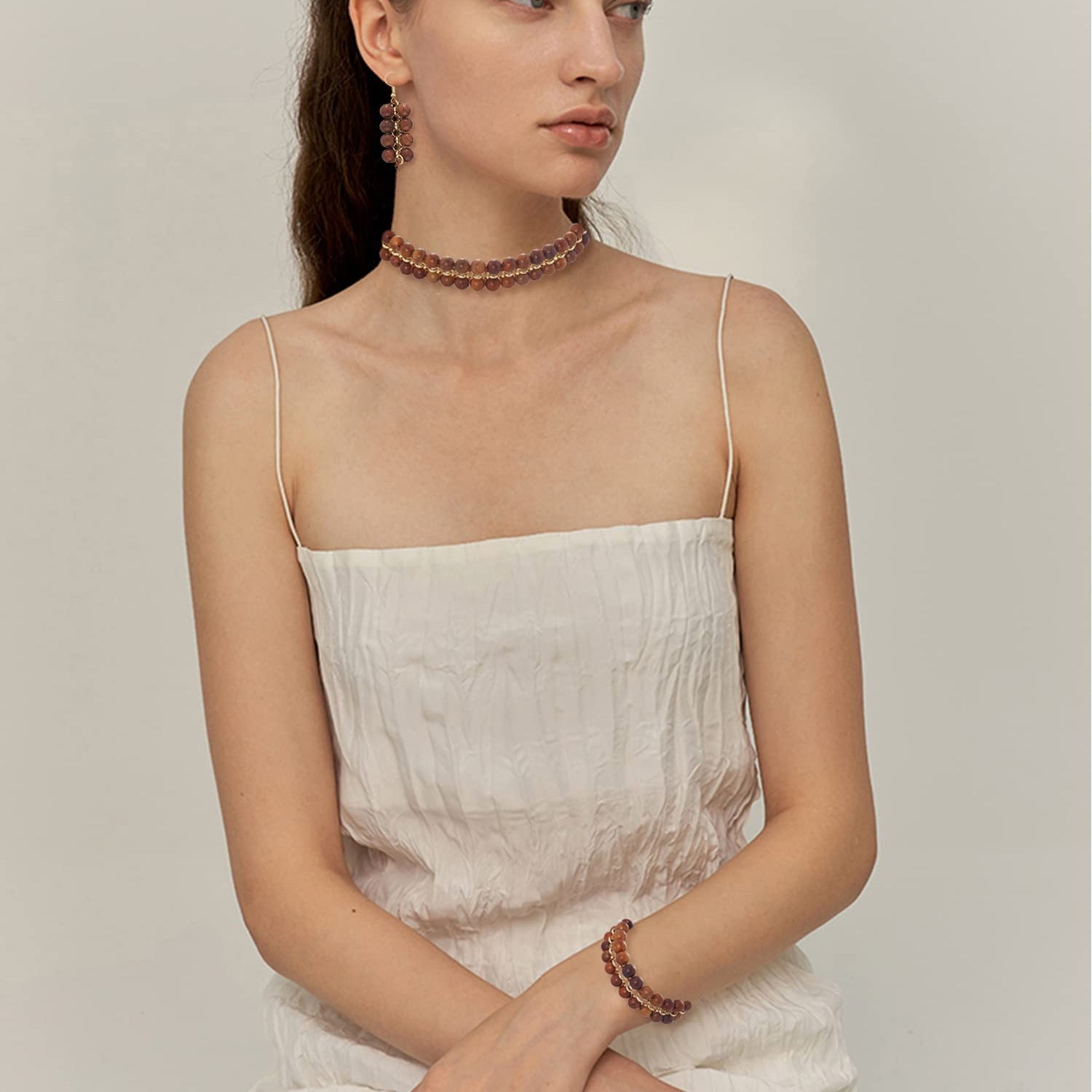 - ♥ Reliable Quality - Our multilayer bracelet choker and earrings are made of wood beads and alloy, which are reliable in quality and delicate in appearance, have a cool tactility, lightweight and cozy to wear, not easy to shed or fade, have a long service time.