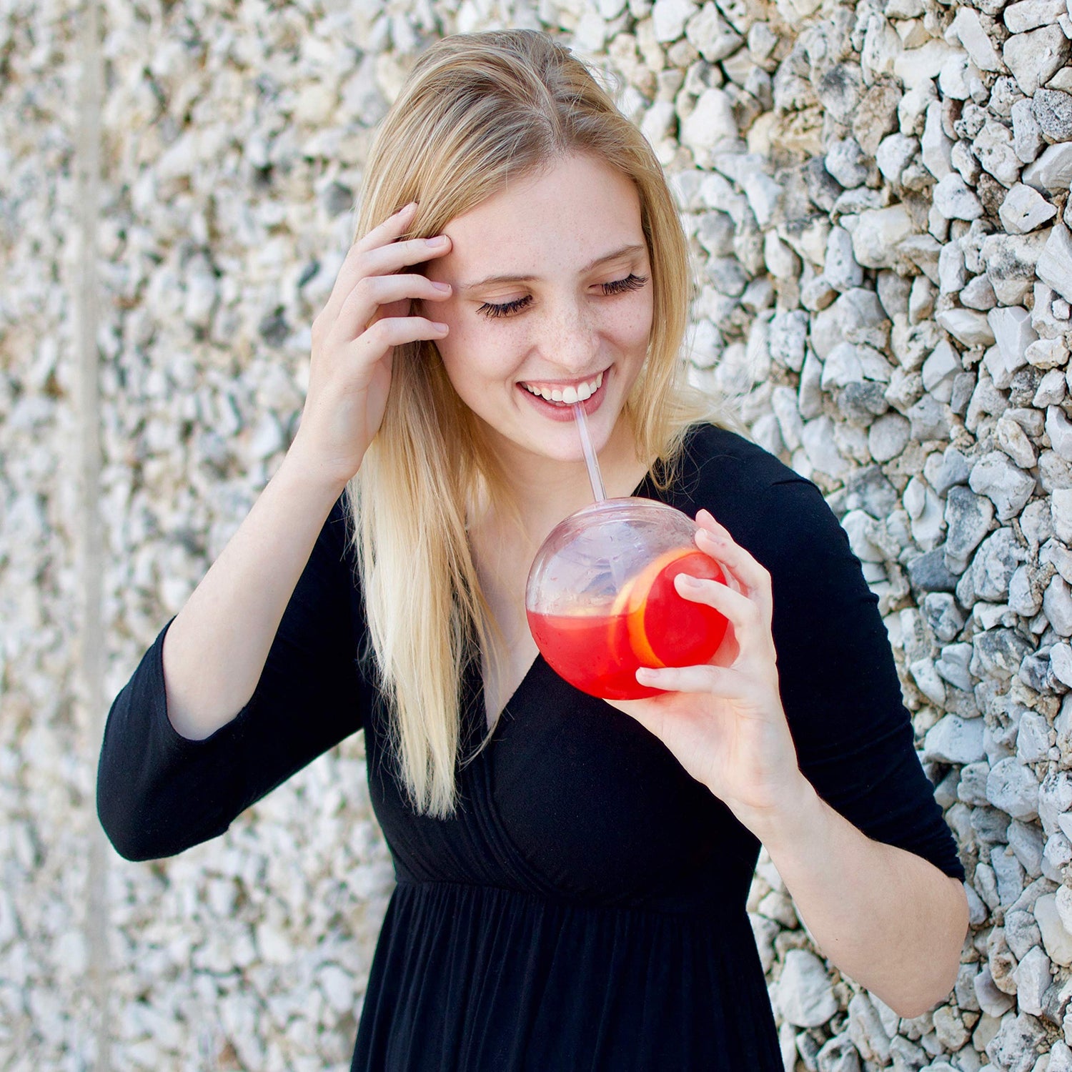- REALISTIC AND FUN DESIGN: Sphere-shaped drinking cup will bring laughs to your next party. It has a rounded shape so it’s easy to hold and drink from. The flat bottom means it can be set down on surfaces. The cover allows for the straw to go through