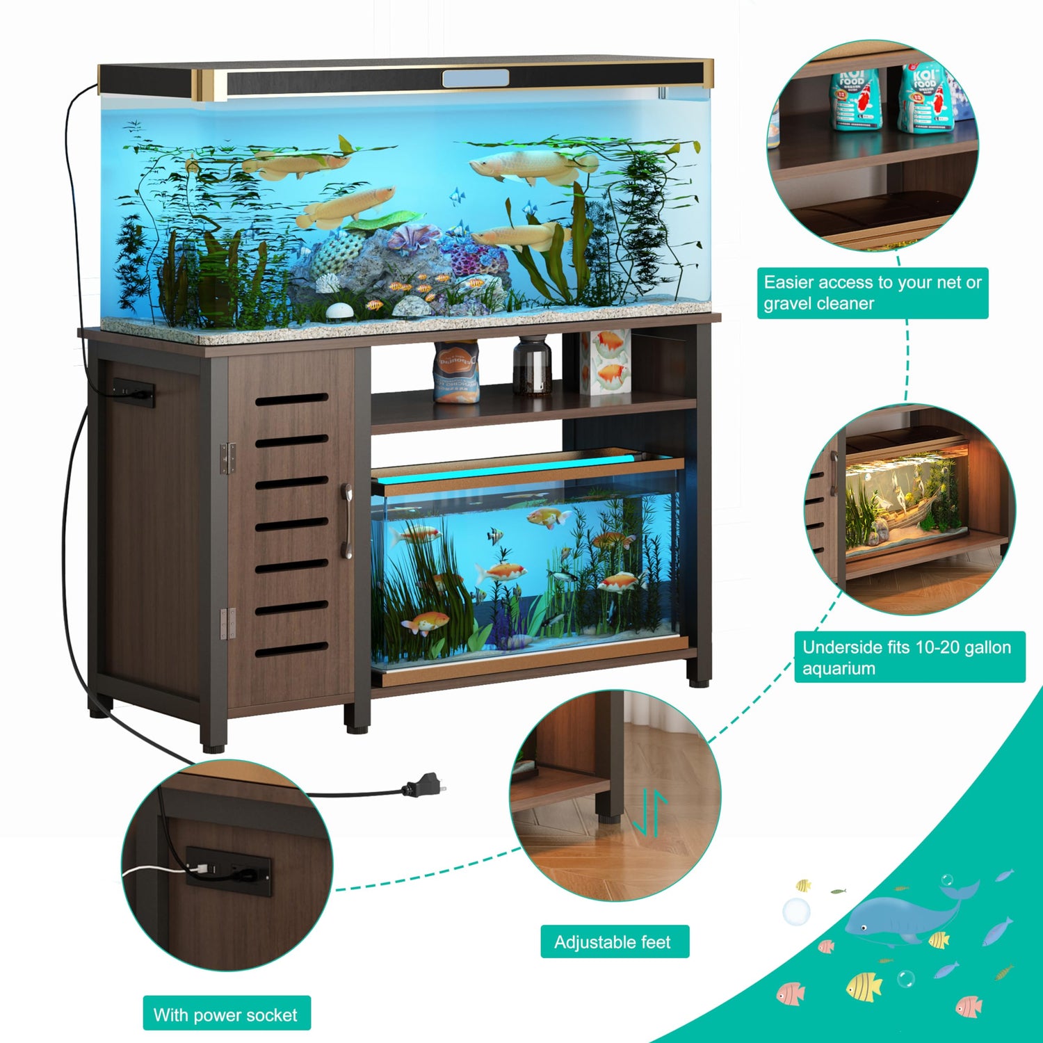 Fish Tank Stand with Cabinet, 55-75 Gallon Aquarium Stand with Power Outlets and Cabinet for Fish Tank Accessories Storage, Heavy Duty Metal Frame