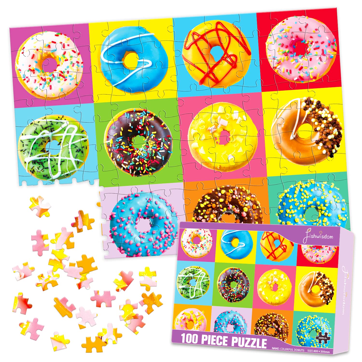 fishwisdom 100 Piece Donuts Jigsaw Puzzle for Kids Teens Age 4-8 Gift Family Time (Donuts)