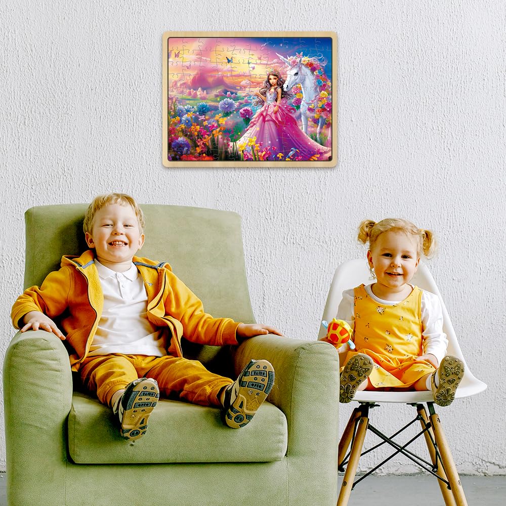 Fishwisdom 100 Piece Jigsaw Puzzle for Kids Age 4-8 Teens Gift Family Time (Princess & Unicorn)