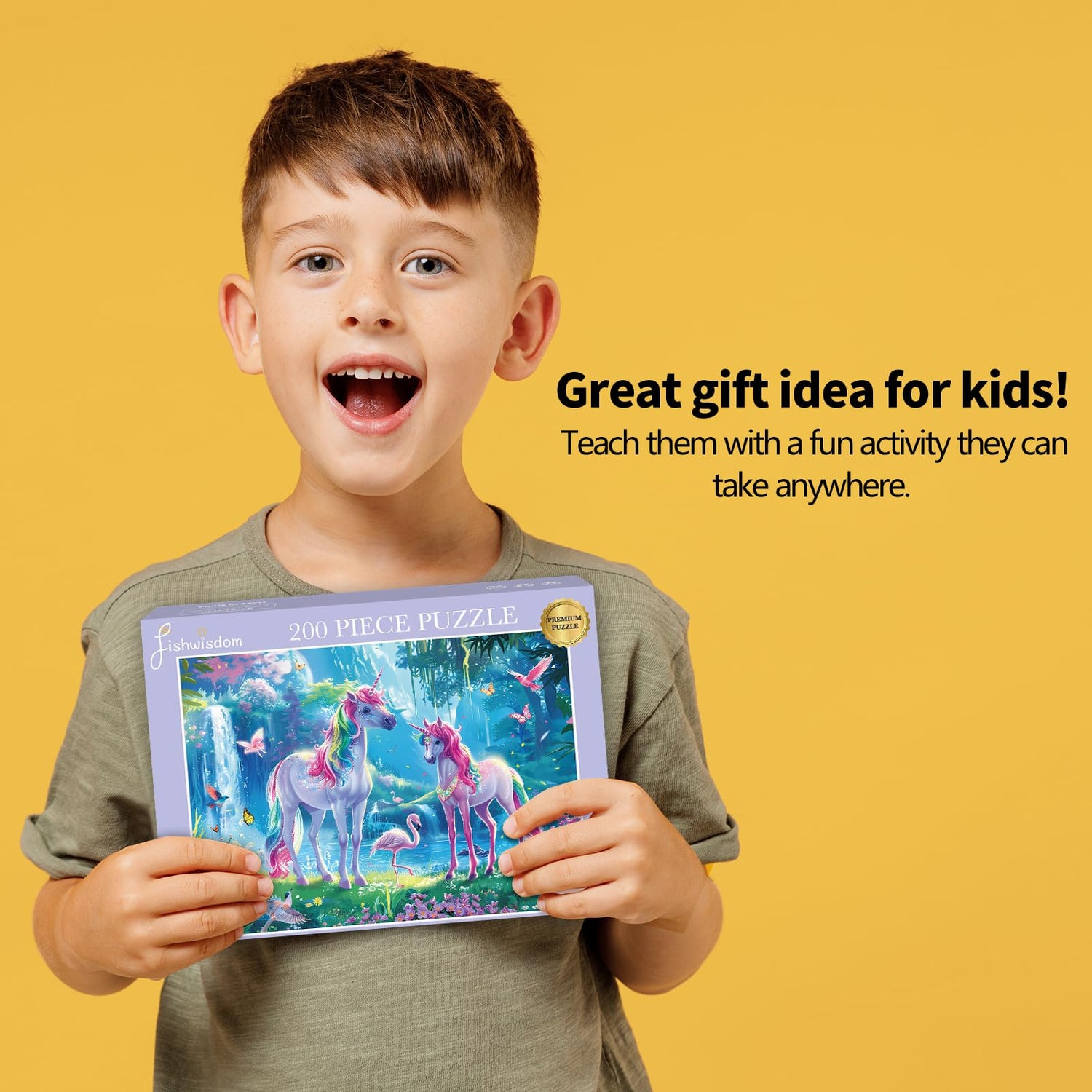 Fishwisdom 200 Pieces Jigsaw Puzzles for Adults and Teens and Kids Family Happy Games Princess Unicorns World for Girls (Unicorns' Rainbow Play)