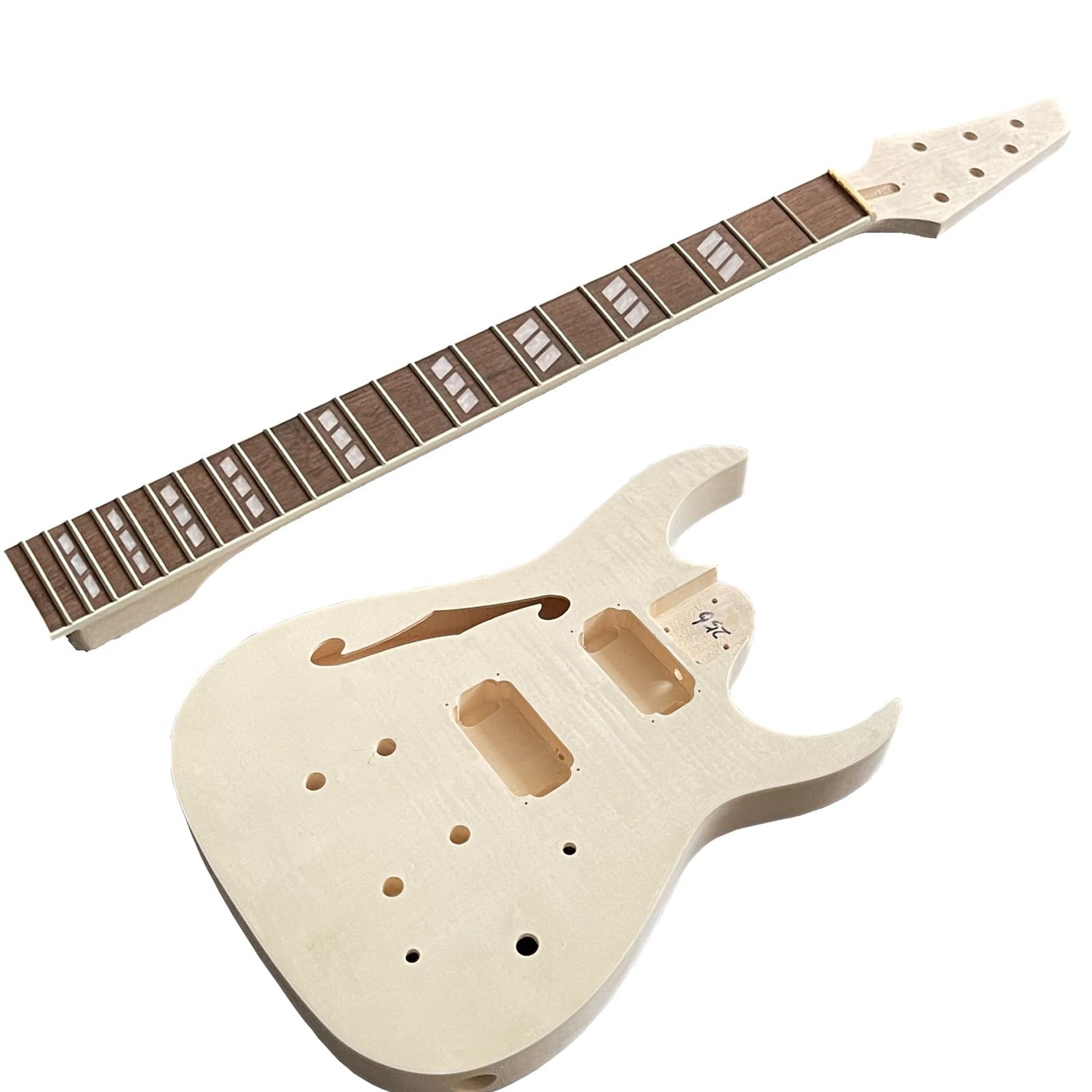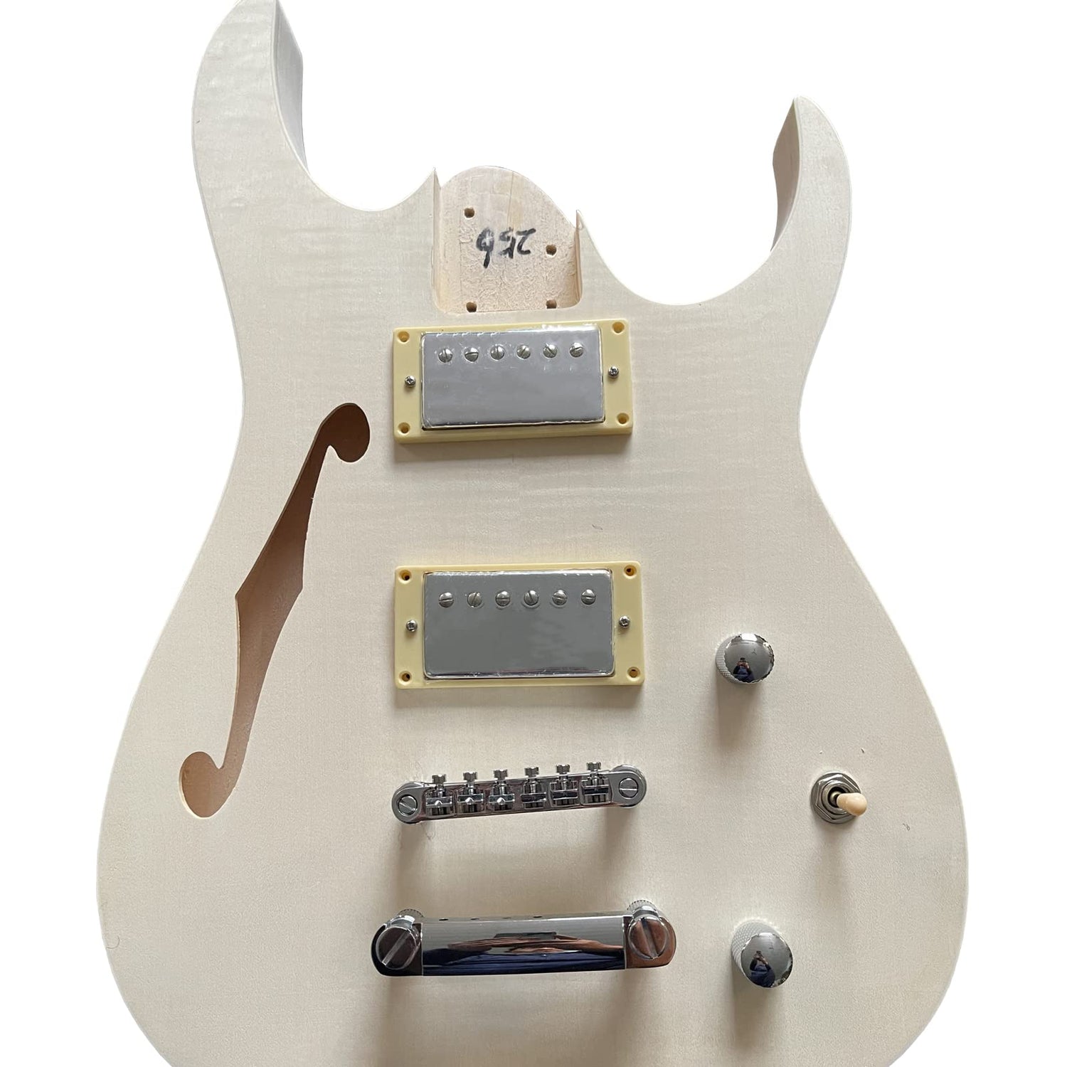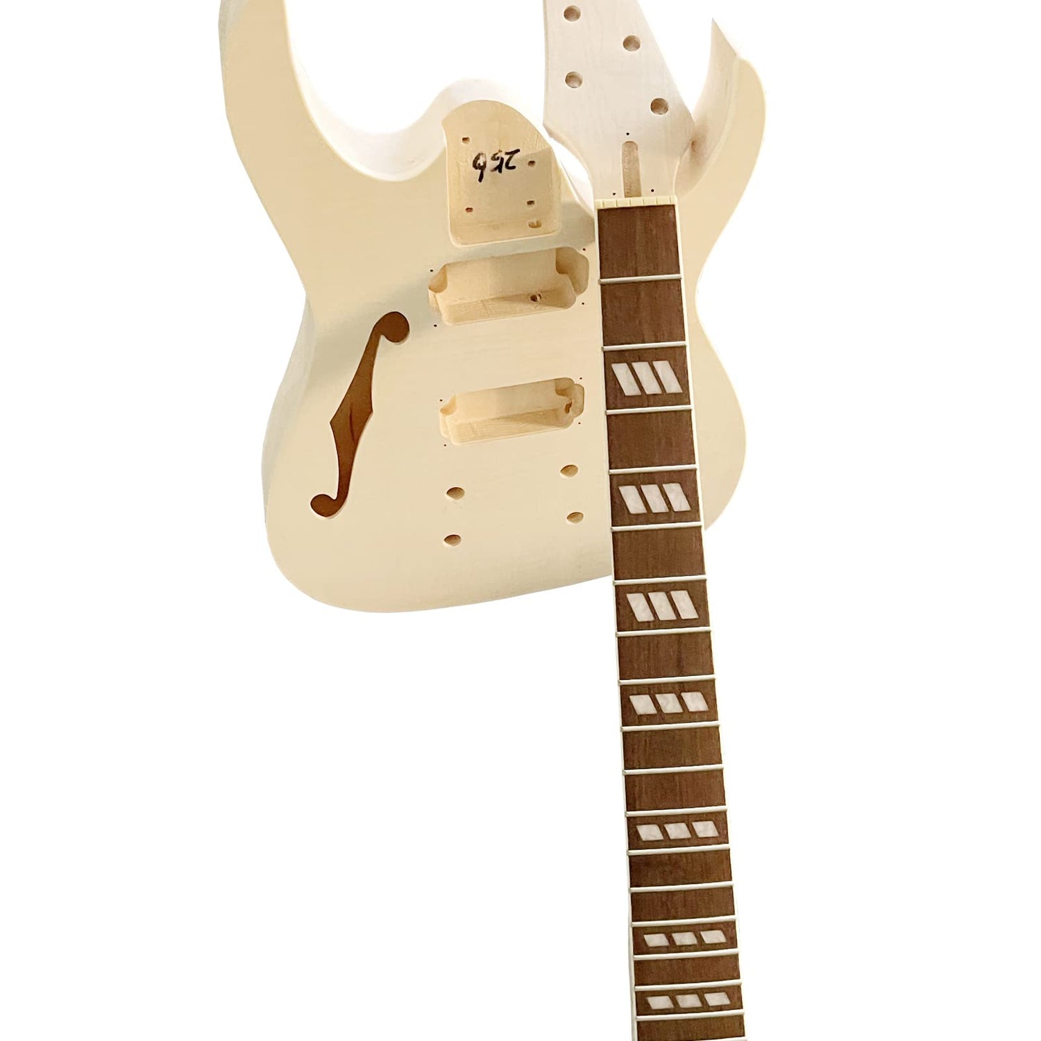 - CUSTOMISE TO YOUR OWN STYLE: The body comes cut and sanded, but completely unfinished, so you can paint, stain, varnish or finish your guitar to any design you wish. The maple neck also comes with an unfinished headstock, so you can mark up it, be it something completely original, or a tribute to an iconic instrument.