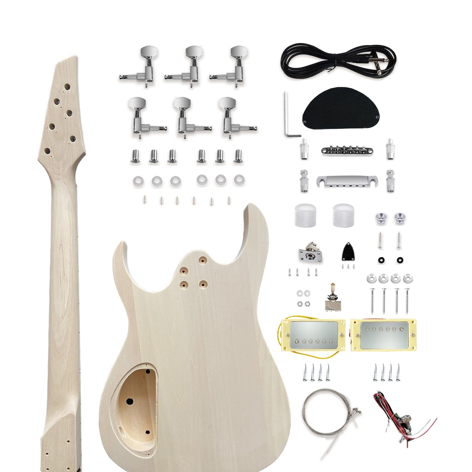 - EVERYTHING YOU NEED IN ONE BOX - This great value DIY guitar kit offers you the opportunity to build your own guitar. Without any of the hassle and expense of sourcing all of the parts, everything you need is in one box! Providing you with all the necessary top quality parts and hardware, you are sure to get a great sounding electric guitar, as well as the fun and satisfaction of building your own instrument.