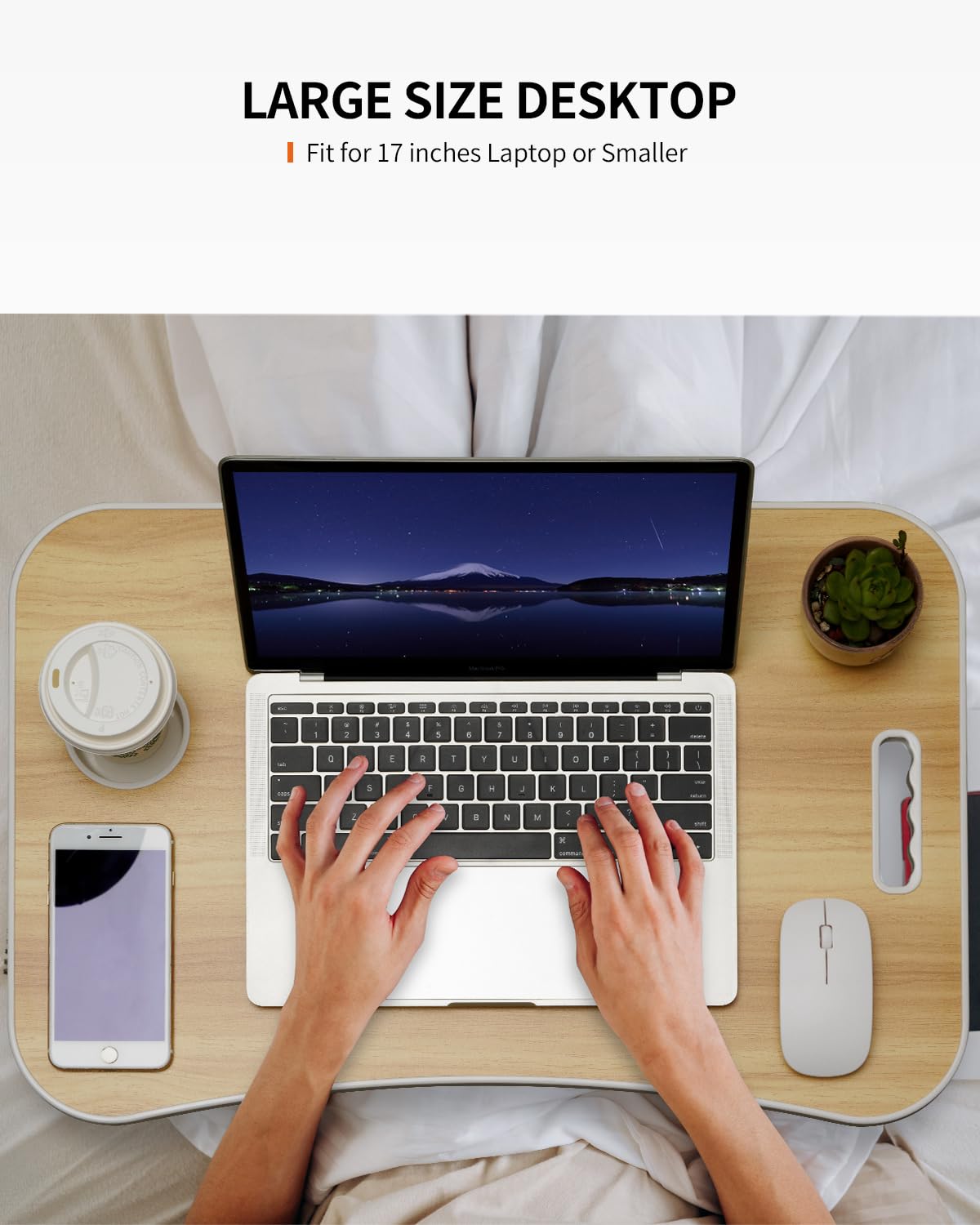 - Multi-Functional: This laptop table is designed for versatility. Use it on the bed, the ground, the carpet, the sofa, the desk and even on the grass. Enjoy the freedom to work, write, or have breakfast in the most comfortable position on your bed, couch, or floor.