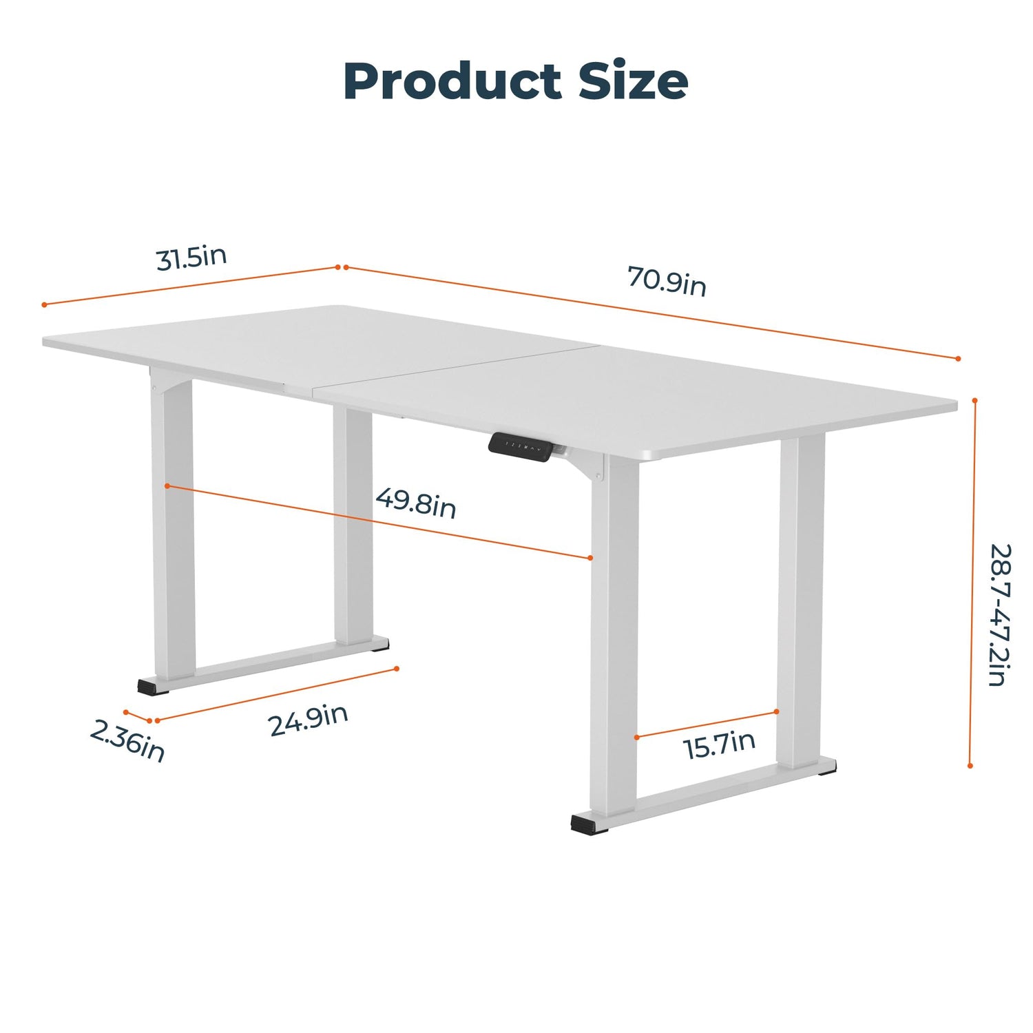 FitStand 4 Legs Standing Desk, Large 71x31 Inches Electric Adjustable Height Desk with Splice Board, Stand Up Desk Home Office Computer Workstation, White