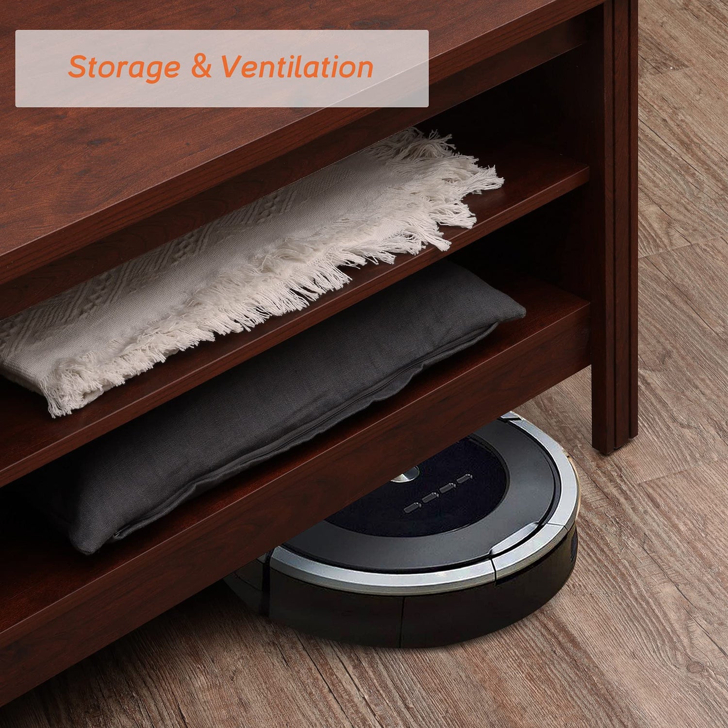- 【Stable & Durable Structure】Crafted of selected P2 MDF material without any smell and no harm to human body, the entertainment stand provide a long service life with excellent wear resistance. And solid wooden legs with foot pads ensure extraordinary stability of the brown tv console table while protecting the floor from scratching.