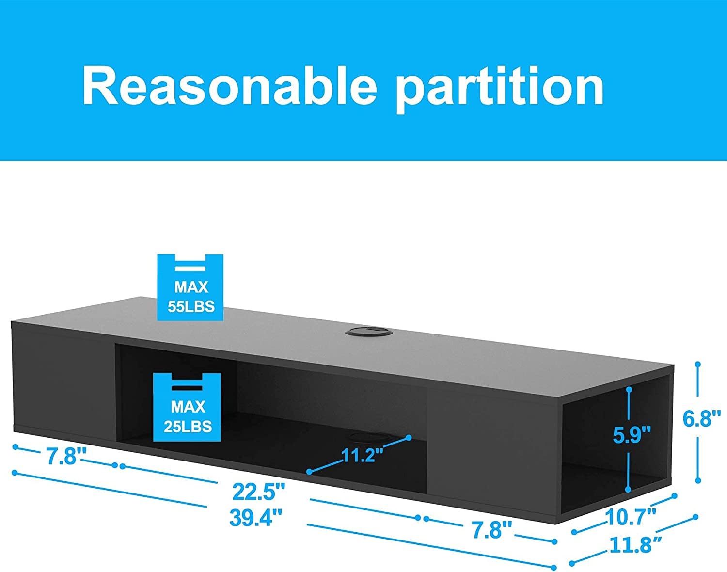 - 【Easy Installation】It can be easily assembled with simple step-by-step instructions. Finished dimensions is 39.4*11.8*6.9 in(LxWxH). Weight capacity for shelf :55/33IBS.