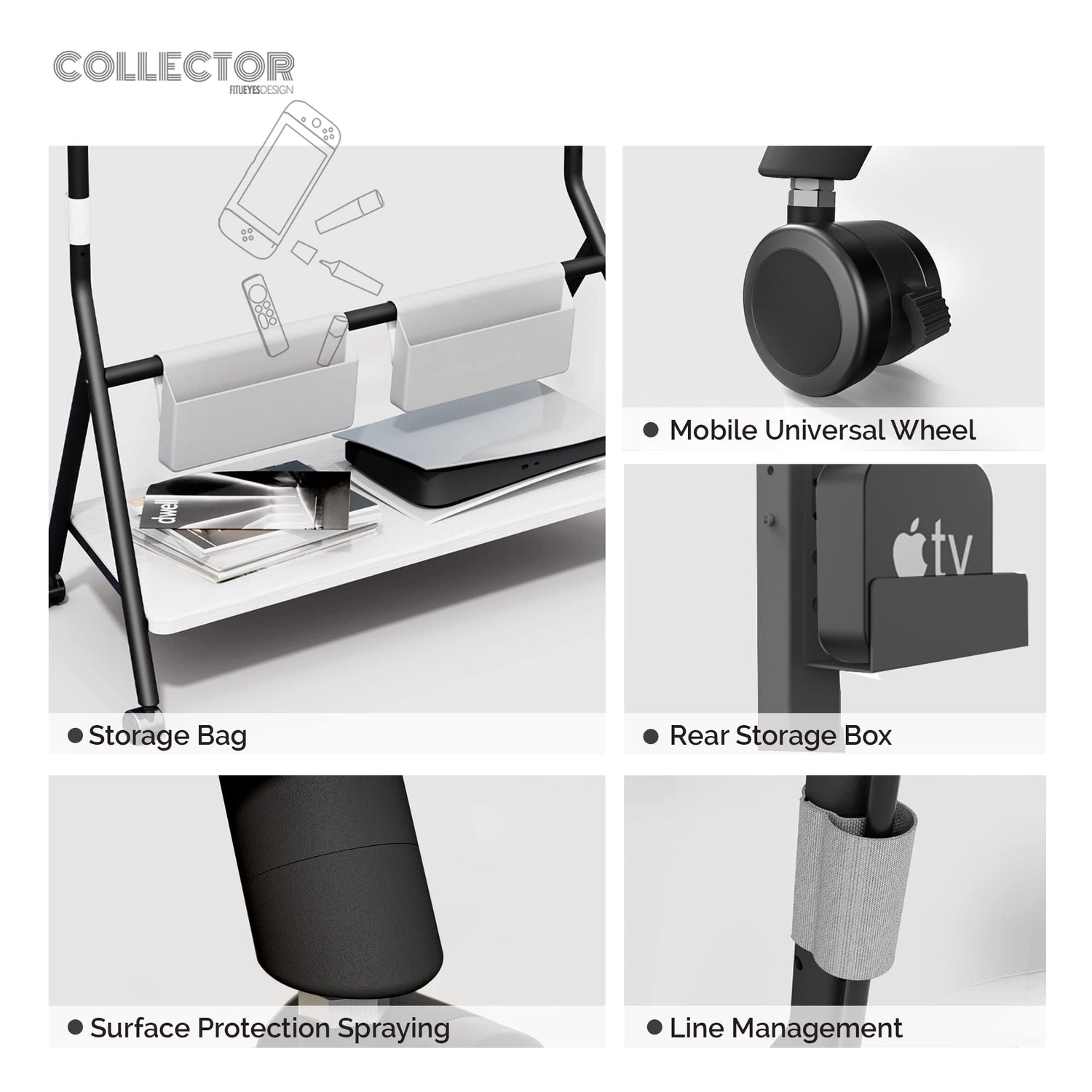 - TV stand with storage & cable management: This TV cart features a wood-textured shelf, a useful space for multimedia devices, remote controls, phones, magazines, or something else you want to keep handy. The storage bag of the rolling TV cart is a perfect choice for bits and pieces. This TV cart also equips a rear storage for TV box and cable management to organize the cables. With this corner TV stand, everything look neat and tidy!