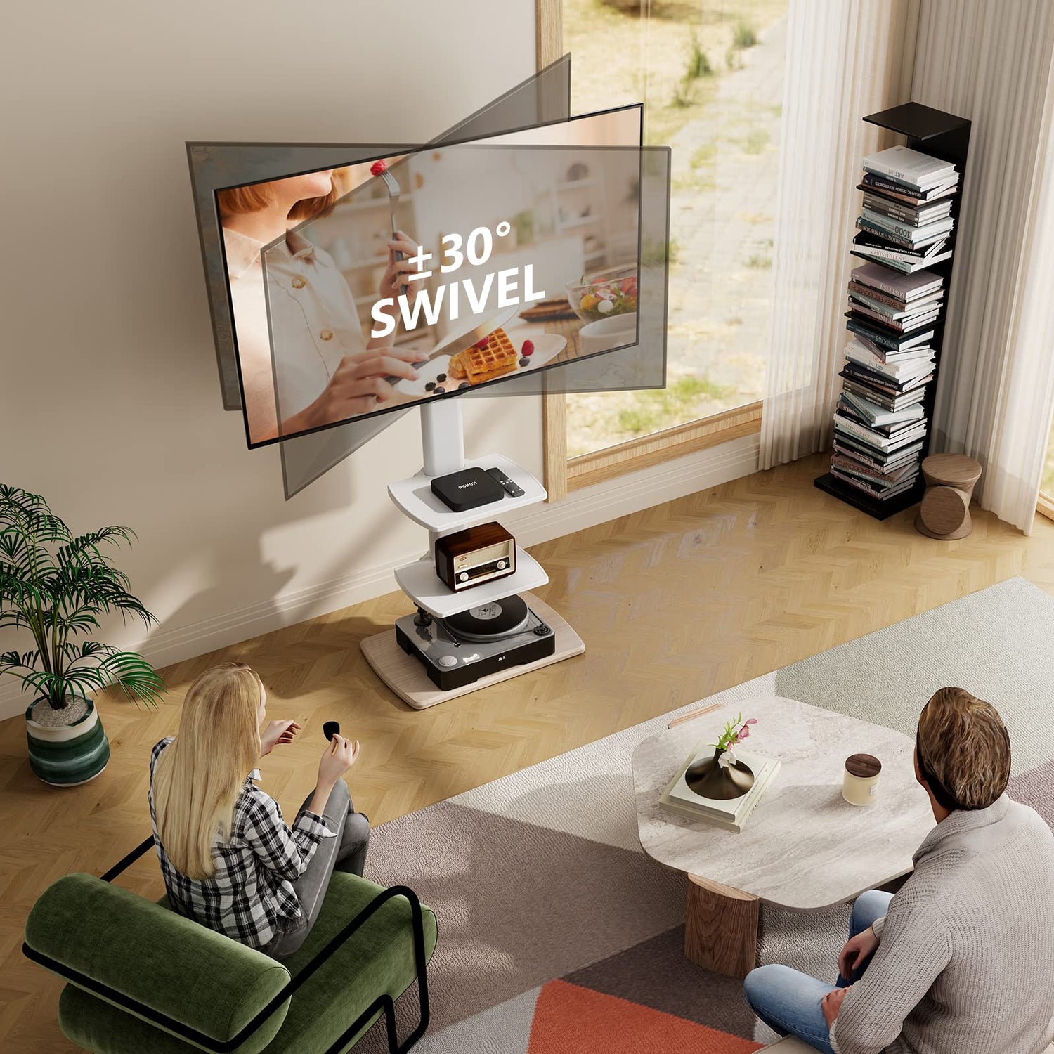 FITUEYES Floor TV Stand for 32 39 40 43 49 50 55 60 65 70 Inch TVs, Modern TV Stands with Shelf for Living Room Bedroom, Height Adjustable Corner TV Stand White