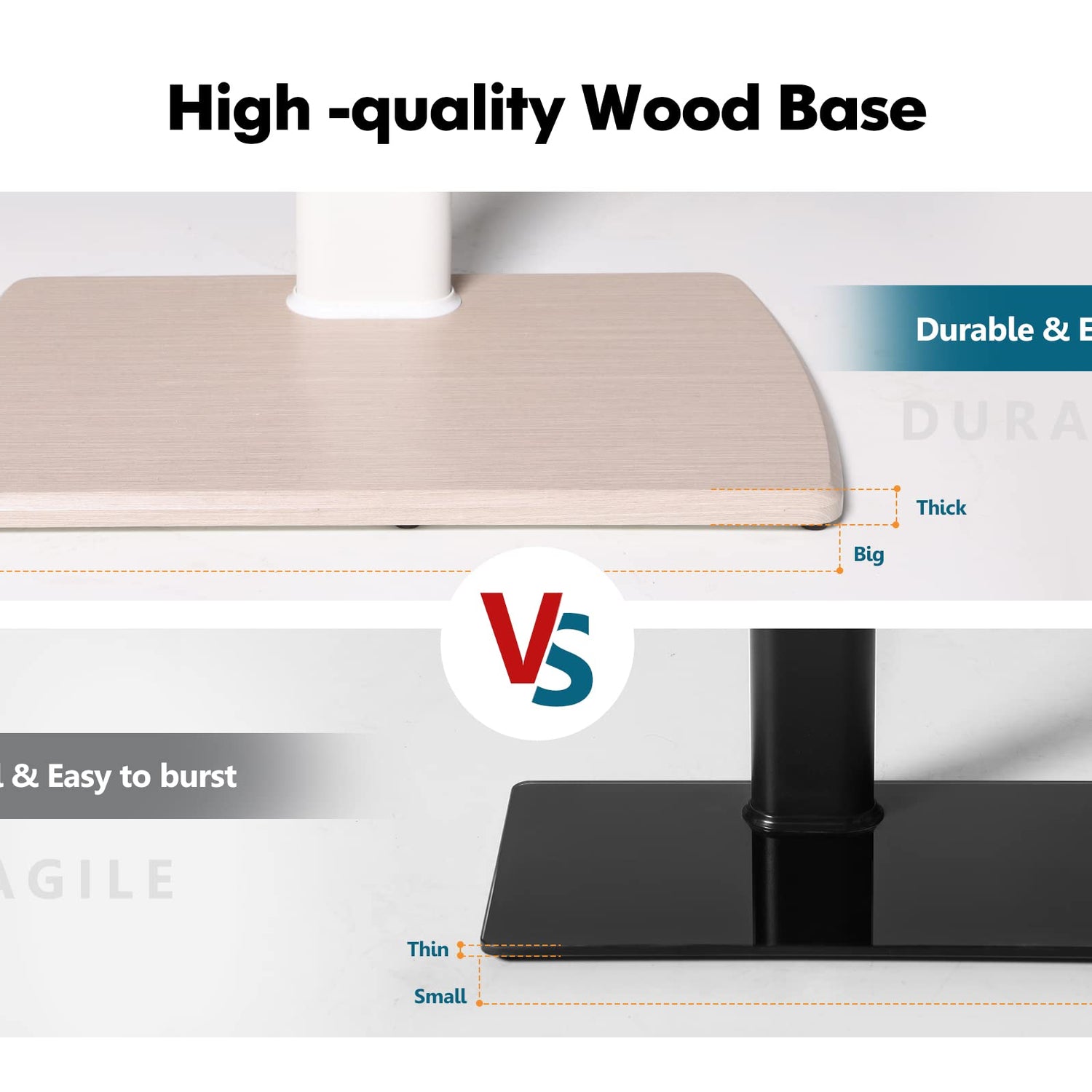 - WOOD-TEXTURED BASE: Don’t hesitate to have this small TV stand with mount, there’s no need to drill your beautiful wall but decoration for your room. Wood Base make you NO WORRY about breakage during the transportation and installation