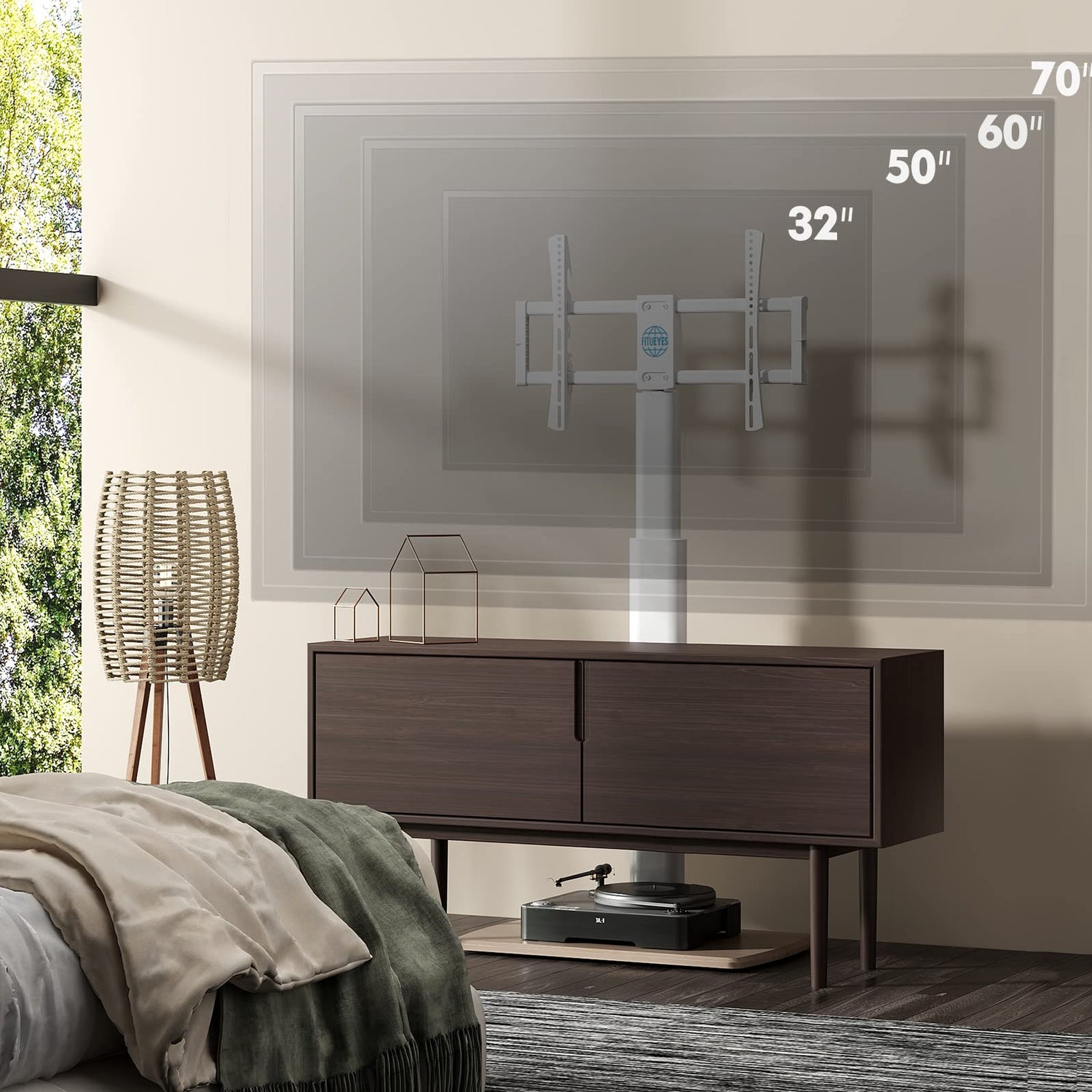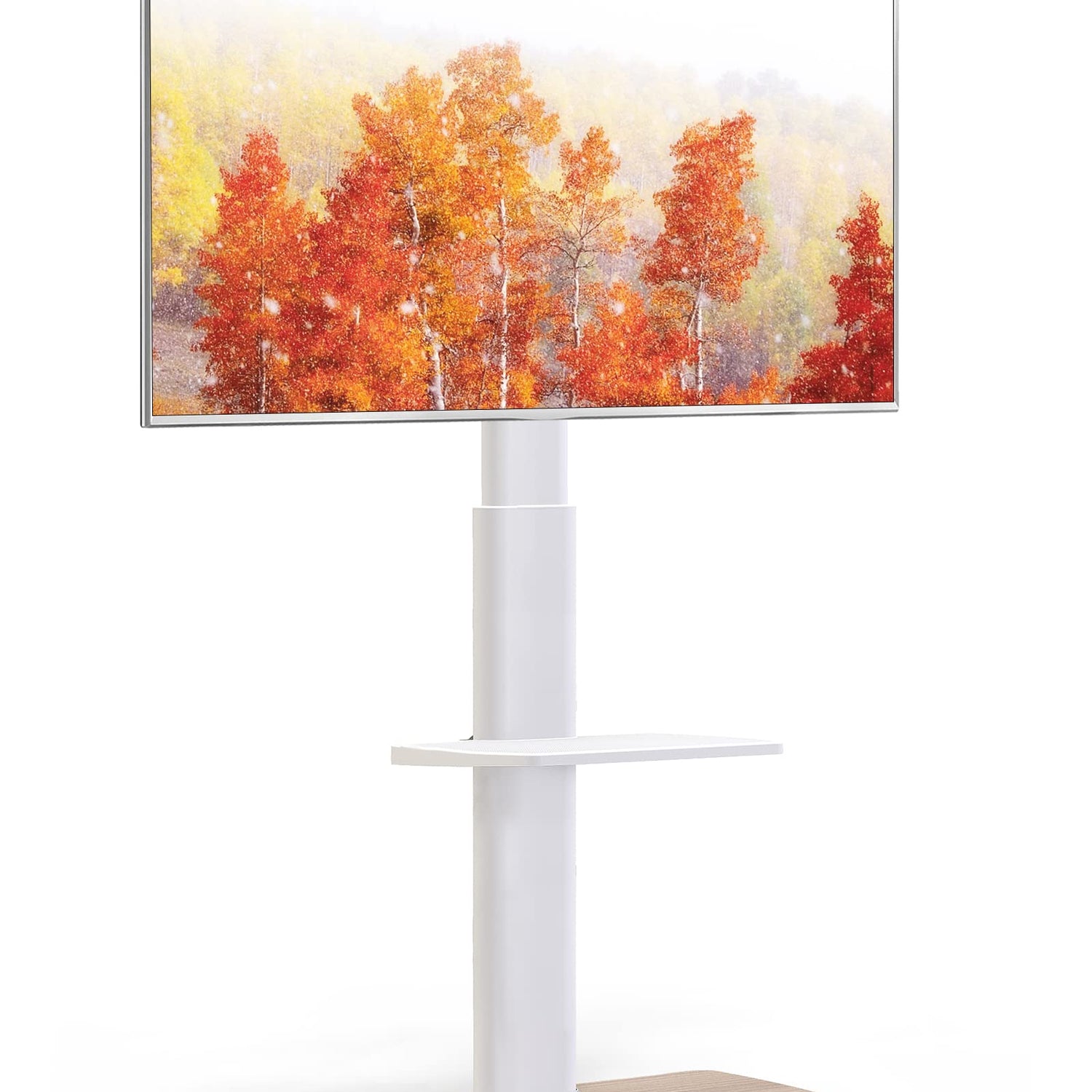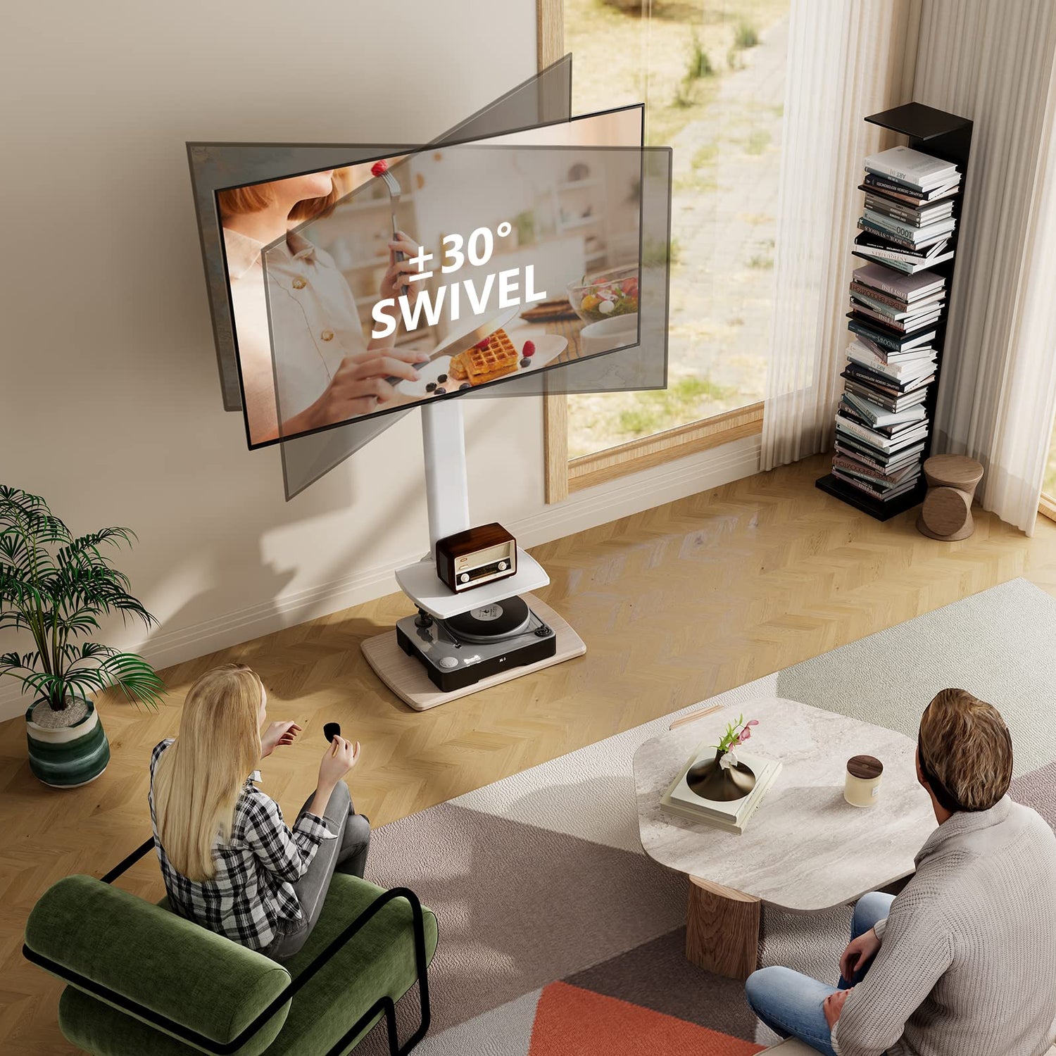 FITUEYES Floor TV Stand Tall for Living Room, Bedroom, Corner TV Stands for TVs up to 70 Inch Swivel TV Mount Stand with Height Adjustable Shelf Upgrade Sturdy Wood Base White