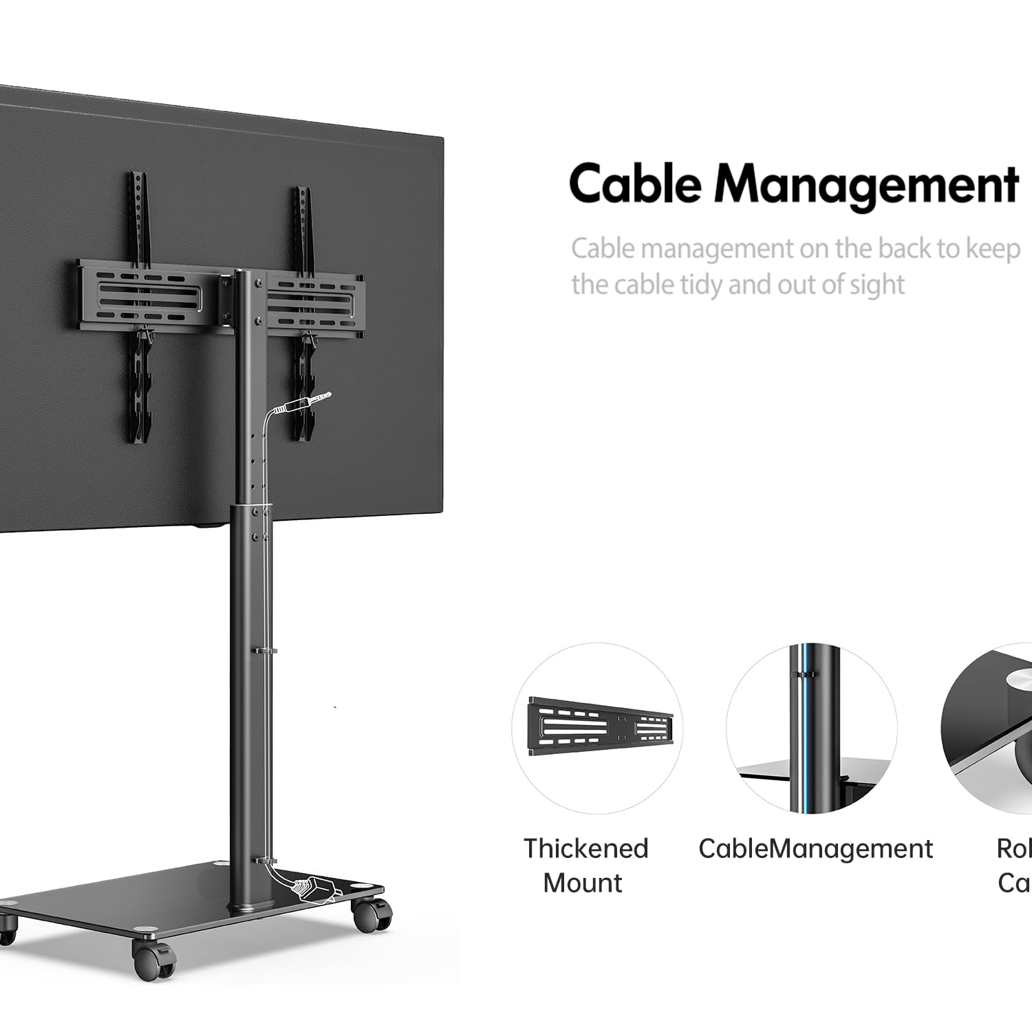 - FLOOR TV STAND FOR DIFFERENT ROOM: This floor TV stand with mount rolling with 4 wheels perfect for your home office, conference rooms, school, trade shows and more. Updated lockable wheels avoid producing loud noise, and provides trouble-free, silent and smooth operation when move the mobile TV stand. for flat screens