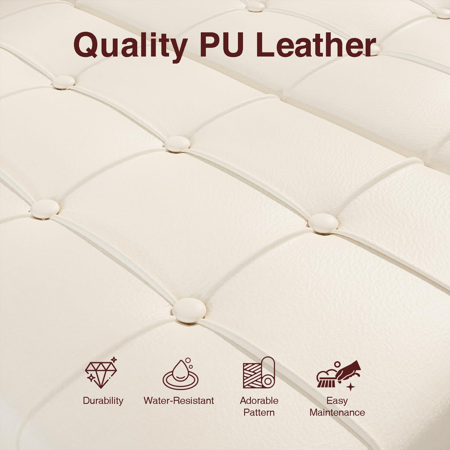 - Aesthetic and stylish Decor: The square leather ottoman is made of high-density foam and faux leather fabric material, the top tufted button decoration, and the bottom metal rivets locking edge craftsmanship, showing the elegant mid-century style
