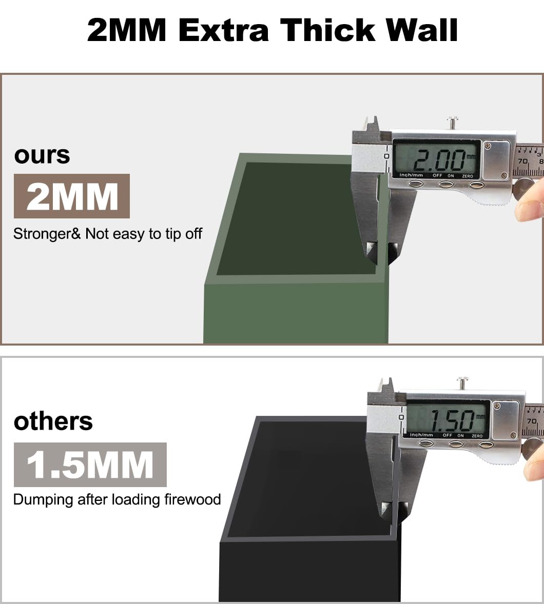 - 2MM THICKENED WALL -- Our wood rack for lumber is constructed with a 2mm solid steel material and finished with a powder coating, making it ideal for long-term indoor or outdoor use. It is designed to withstand bending and tipping, ensuring its stability and durability. With these log racks, you can achieve the perfect solution for your wood storage needs while keeping your yard tidy.
