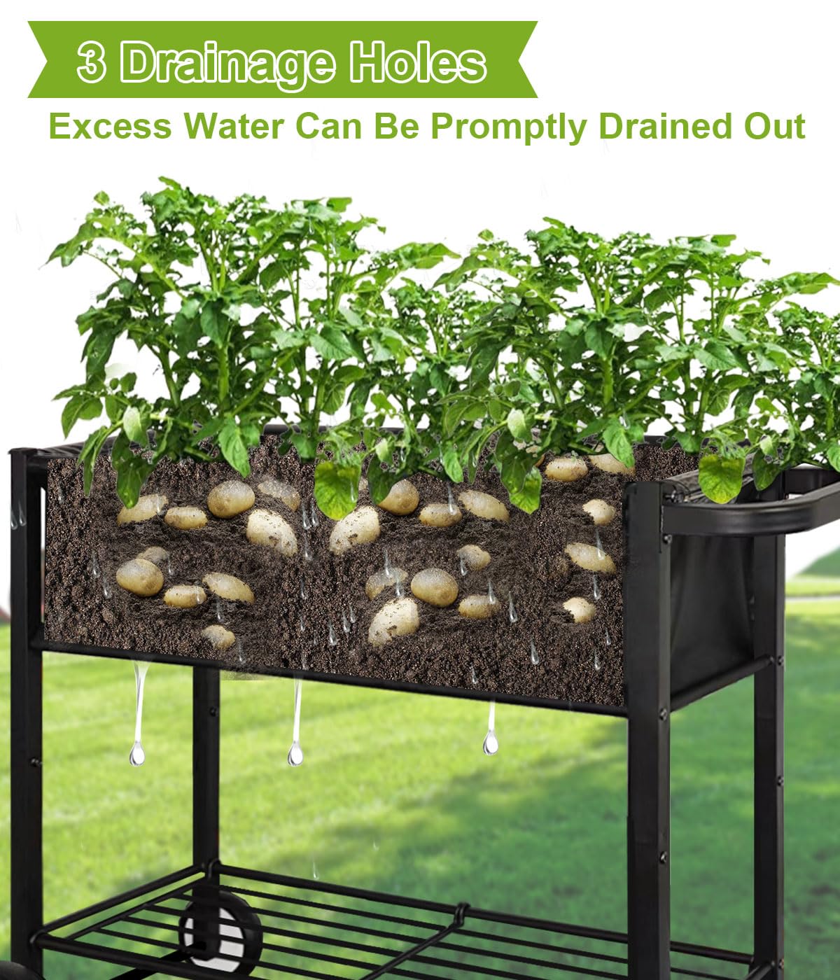 - Large Wheels - The mobile planting bed comes with 2 large-sized wheels and ergonomically designed handle, making it easy to transport and move plants to capture the right amount of sunlight and shade. This tall outdoor raised flower bed stands 31 inches off the ground, which means you can plant and garden more easily and helped keep back and knees from hurting.