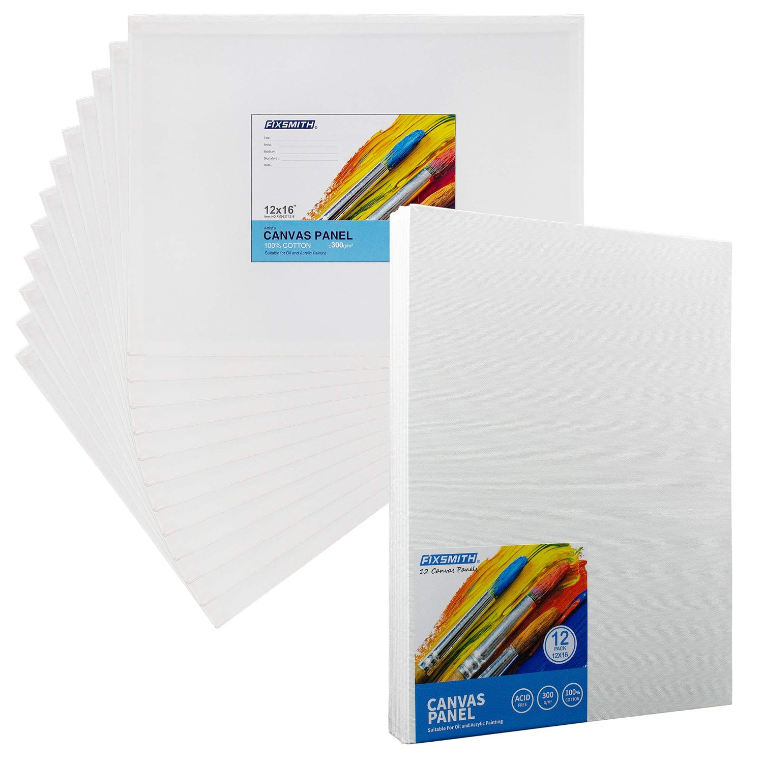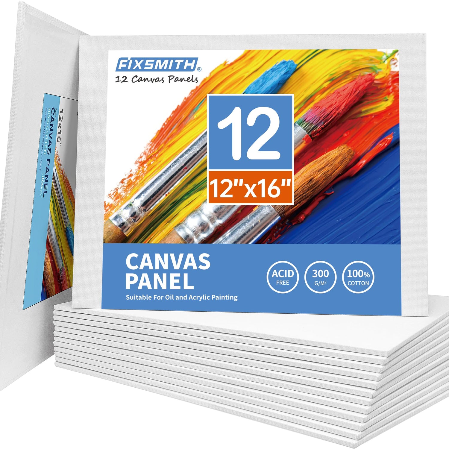 FIXSMITH Canvas Boards for Painting 12x16 Inch, Super Value 12 Pack White Blank Canvas Panels, 100% Cotton Primed, Painting Art Supplies for Professionals, Hobby Painters, Students & Kids