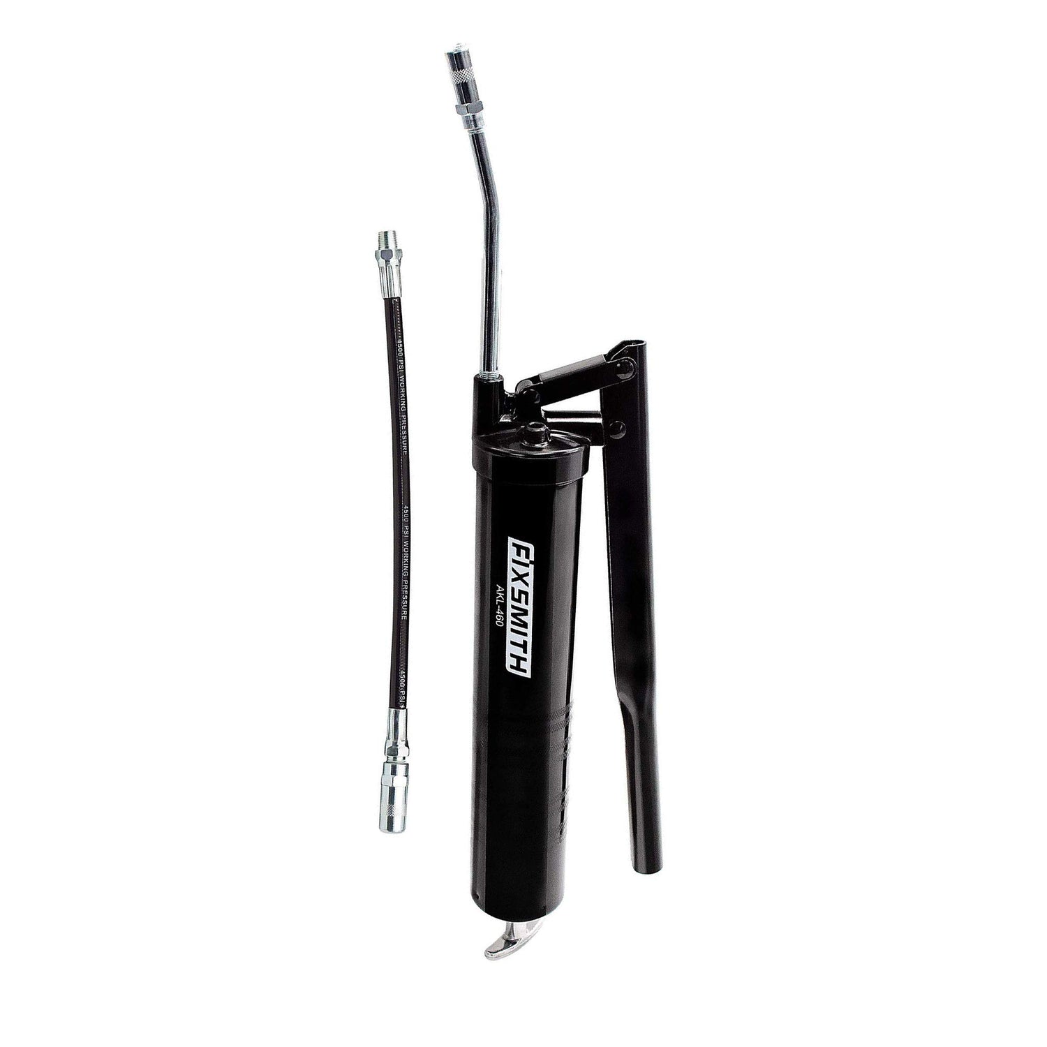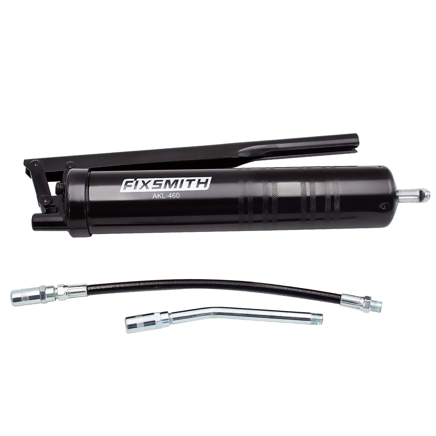 FIXSMITH Professional Lever Action Grease Gun- Heavy Duty Construction-10,000 PSI Max Pressure,Includes 12" Reinforced Flex Hose & 7" Rigid Extension,2-Way Loading-14 oz.Cartridge & Bulk Fill.
