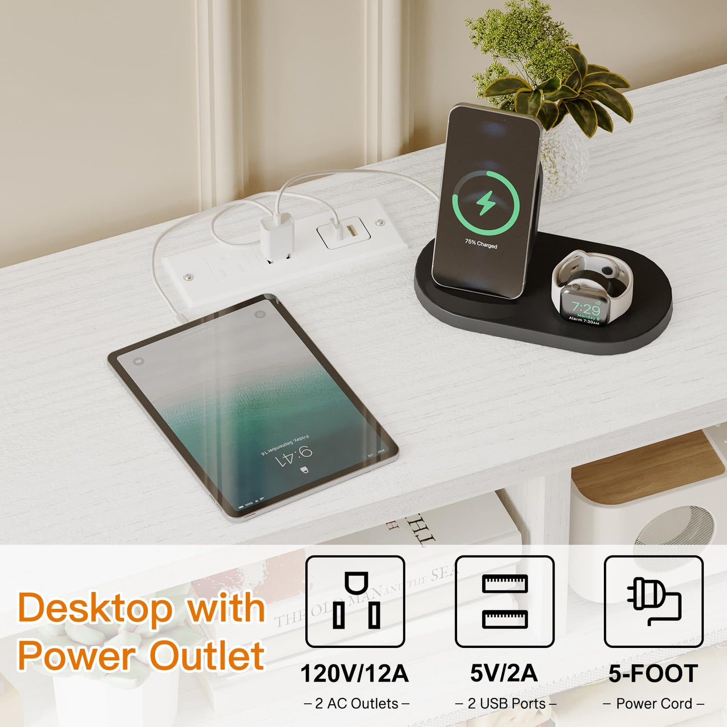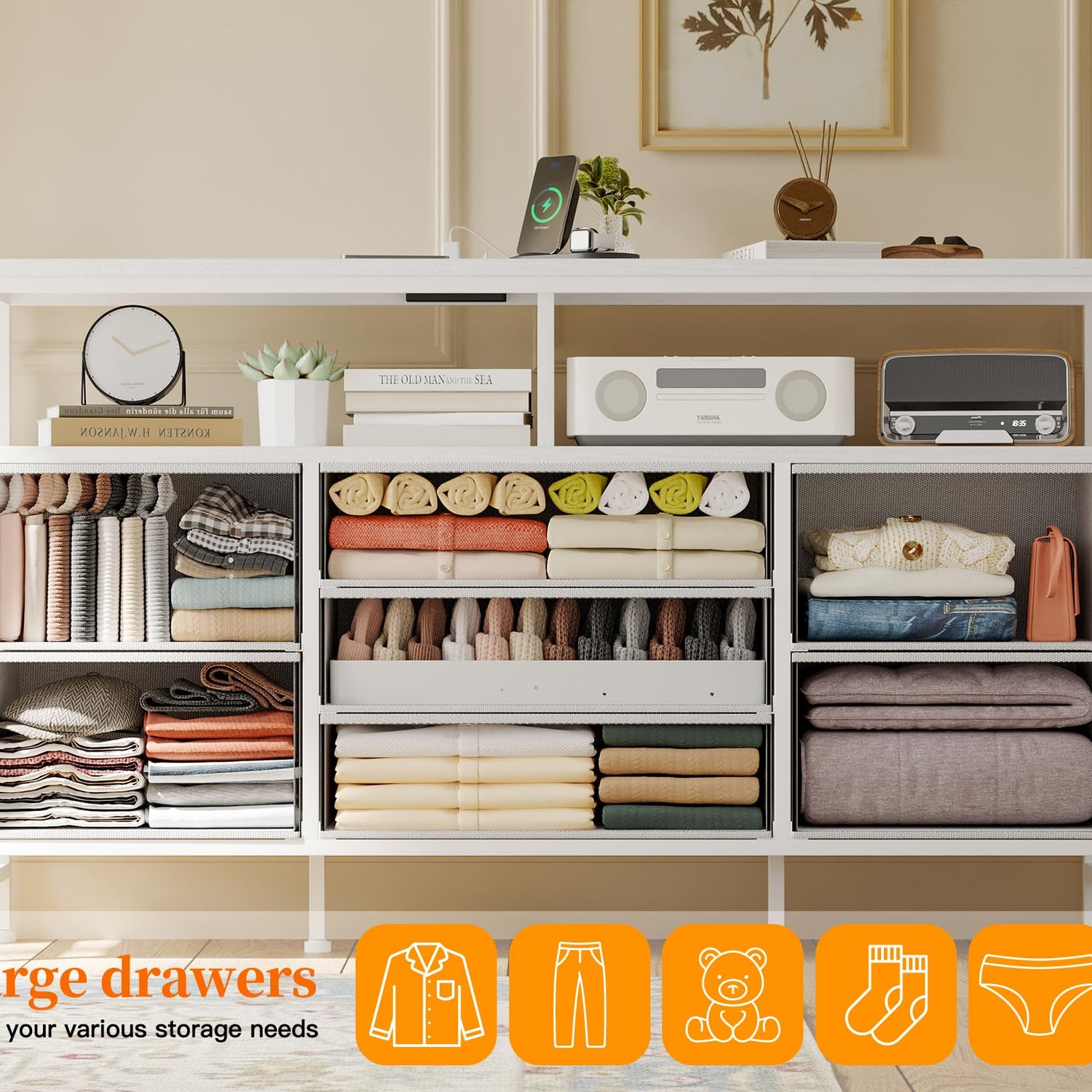 - 【Built-in Power Outlets】Fixwal white dresser is equipped with two AC outlets, two regular port, which is very convenient for TV, Xbox and other media devices. This means you can easily charge your devices without needing additional extension cables. AC socket: 120V/12A
