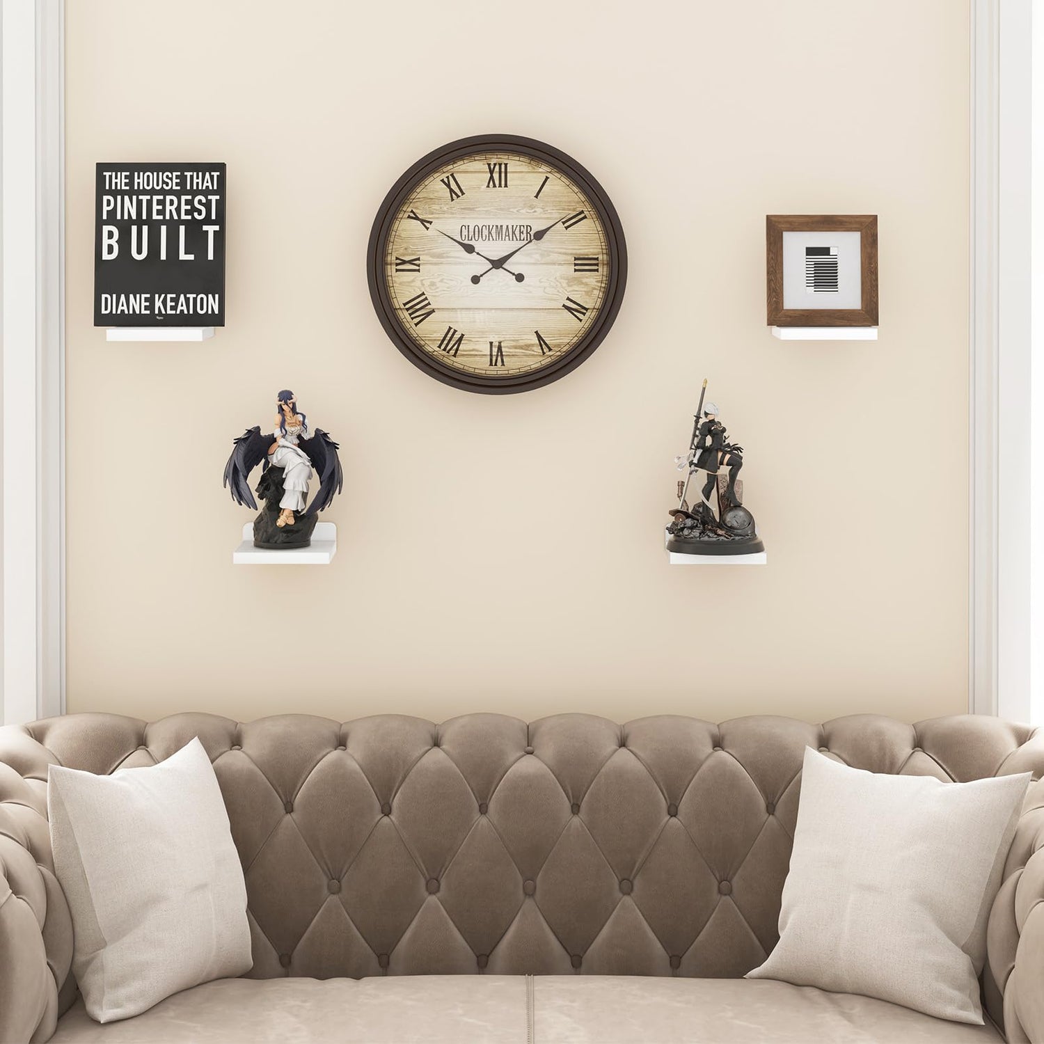 Fixwal Floating Shelves for Wall, Rustic Wood Small Wall Mounted Shelves for Bedroom, Living Room, Kitchen, Bathroom Decor, Set of 4, 5 x 5 Inches (White)