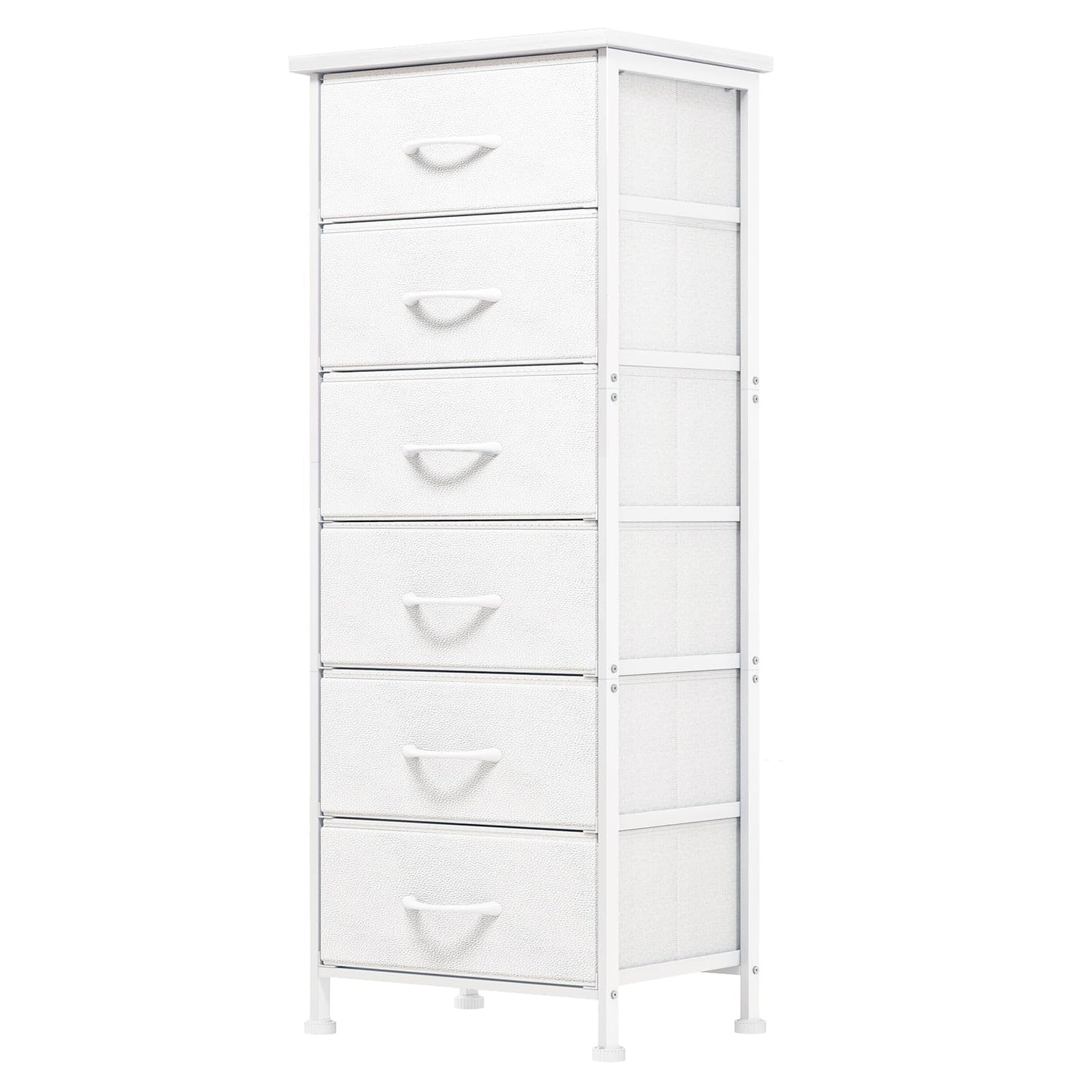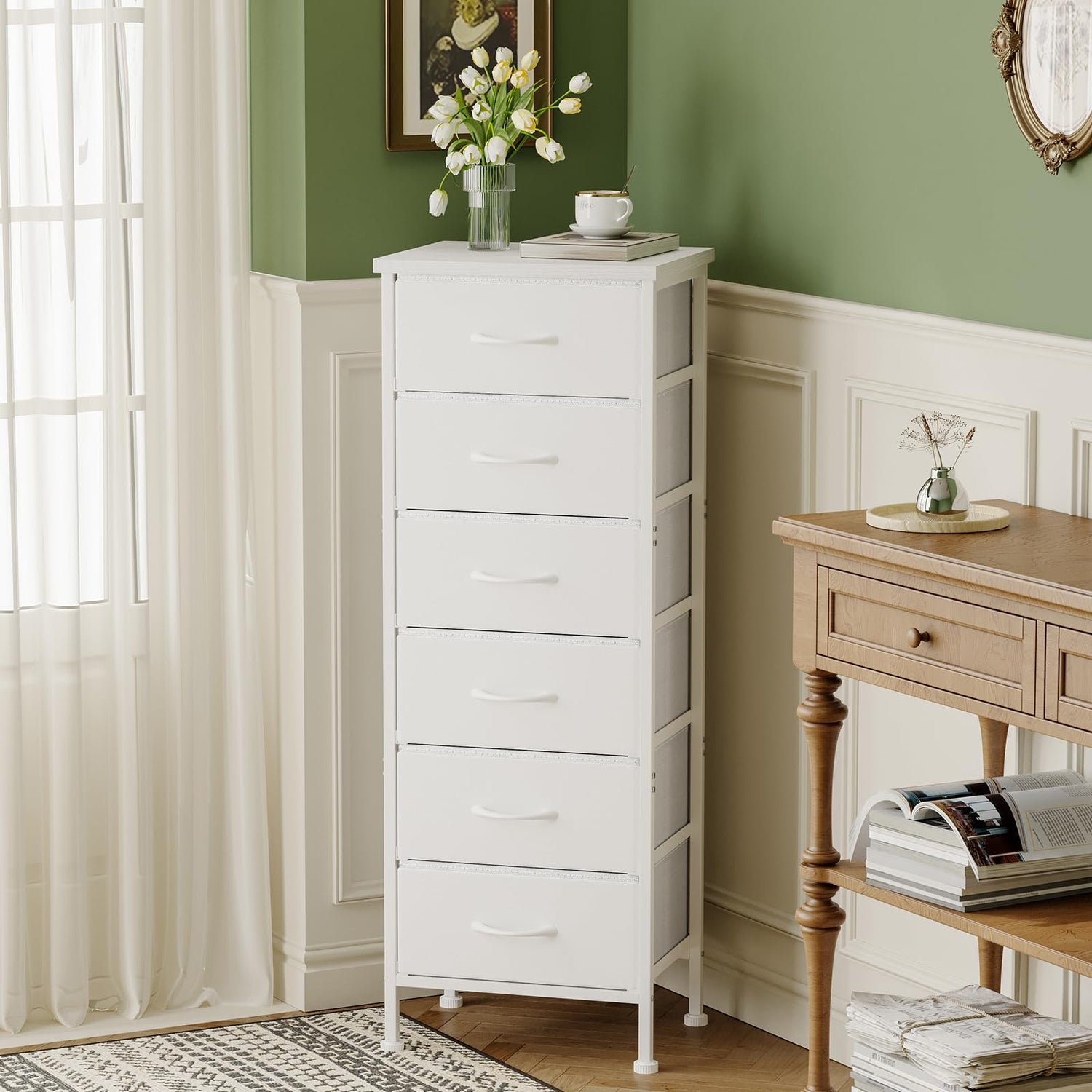 Fixwal White Tall Dresser for Bedroom Closet Organizers and Storage Tall Fabric Dresser with 6 Drawers, Small Clothes Storage Girl Bedroom Furniture
