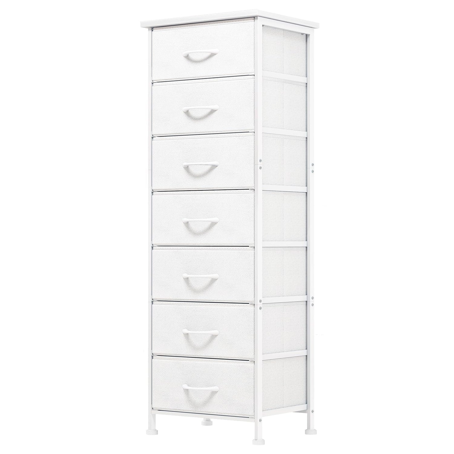 Fixwal White Tall Dresser for Bedroom, Storage Dresser Organizer with 7 Fabric Drawers, Nightstand Furniture in Closet, Entryway, Hallway