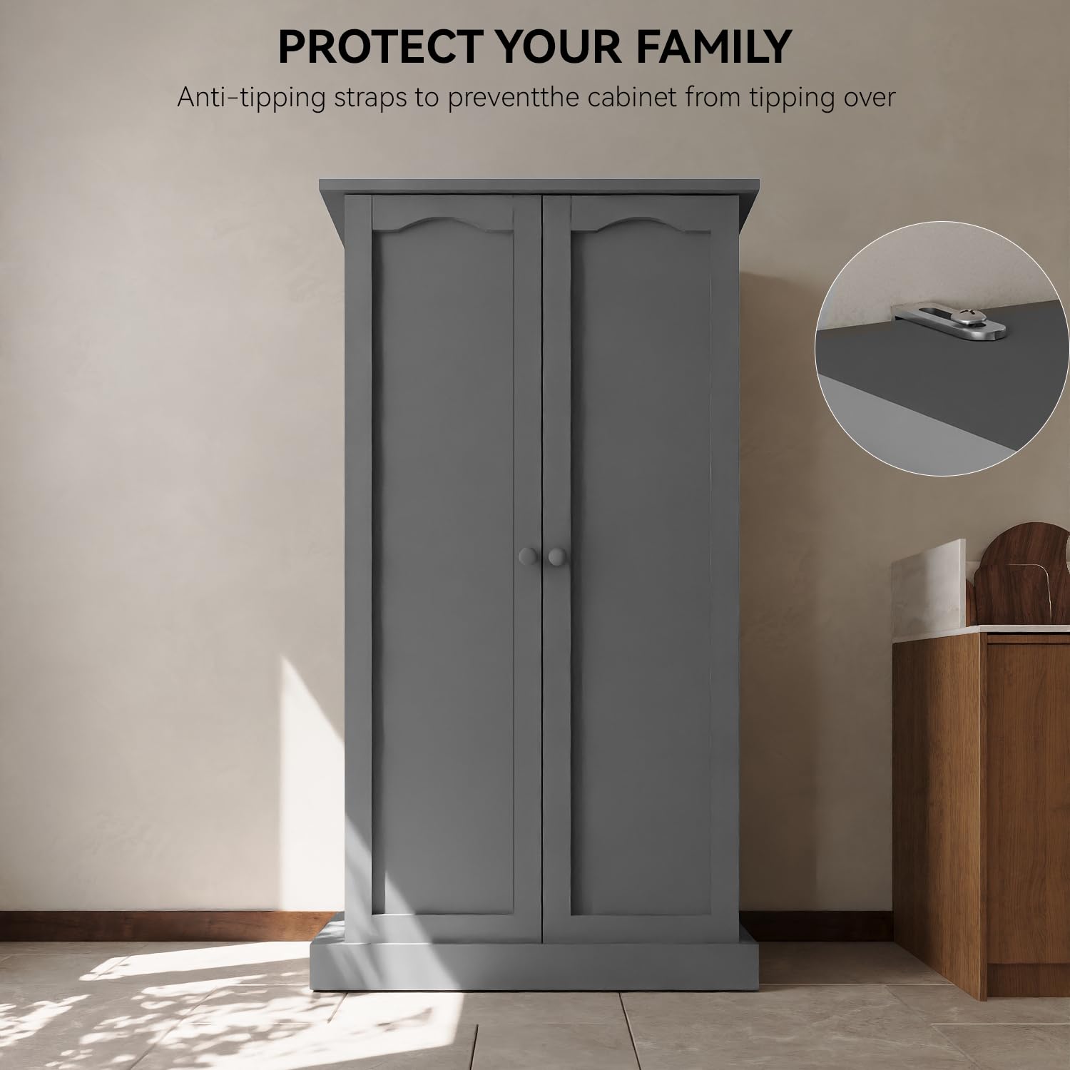 - 【Better User Experience】This food storage cabinet comes with three adjustable shelves, allowing you to customize storage space for items of varying sizes—such as tableware, spice jars, and more. The magnetic door lock and high-quality metal hinges ensure a smooth glide with every use.