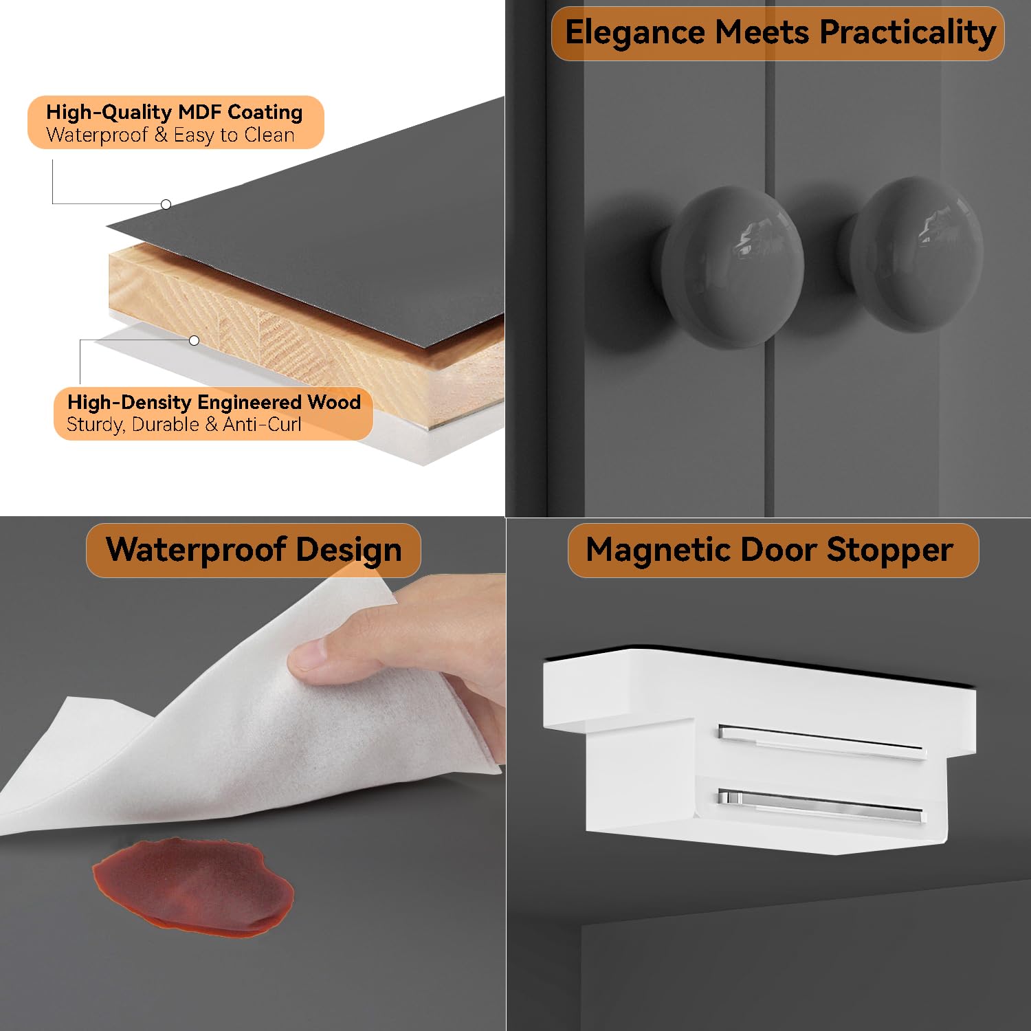- 【Premium Materials and Design】This freestanding kitchen storage cabinet is crafted from high-density engineered wood, offering water resistance, sturdiness, and easy cleaning. The combination of a sleek modern aesthetic and premium materials brings timeless elegance to your home.