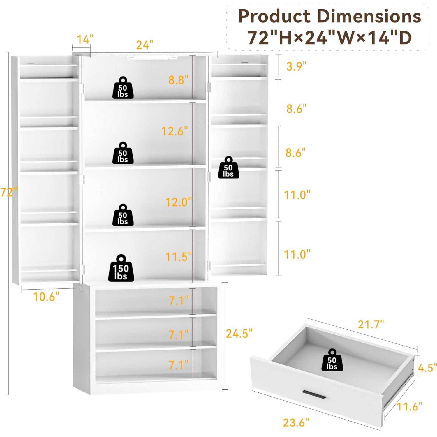 - 【Ample Space】Spacious and versatile storage space, FJTJBSI pantry are equipped with adjustable shelves that you can adjust to different heights or even remove to meet different storage needs, we are equipped with three large drawers provide enough space for organizing food, canned goods and utensils.