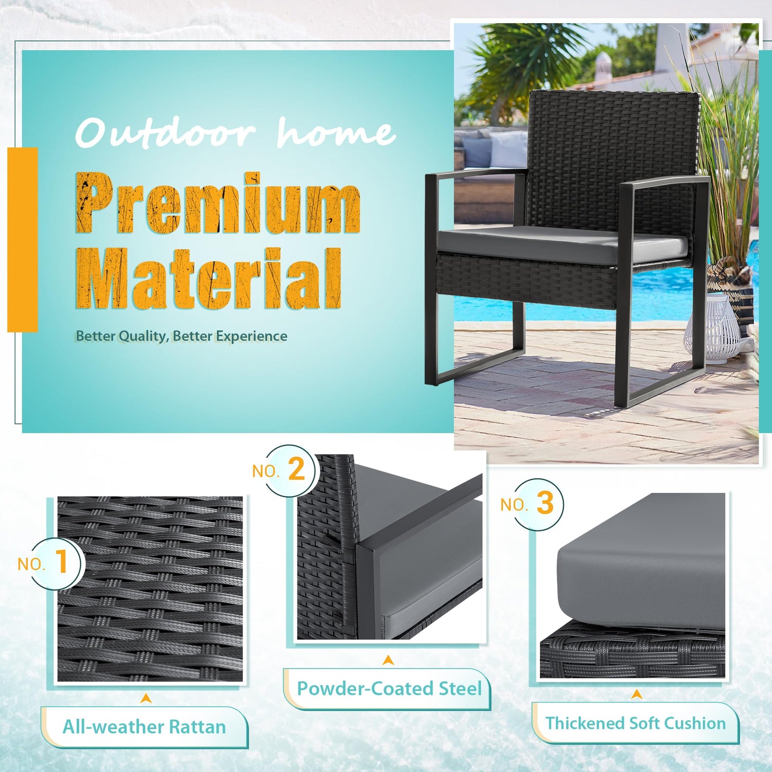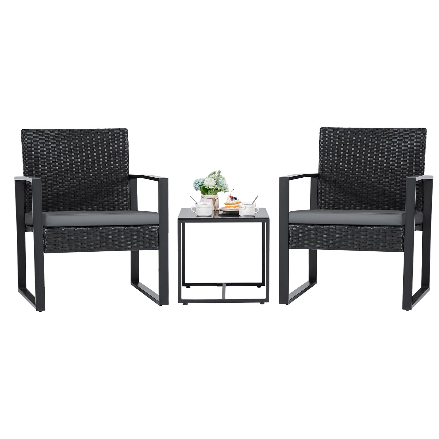 Flamaker 3 Pieces Patio Set Outdoor Wicker Furniture Modern Bistro Rattan Chair Conversation Sets with Coffee Table for Yard (Grey)
