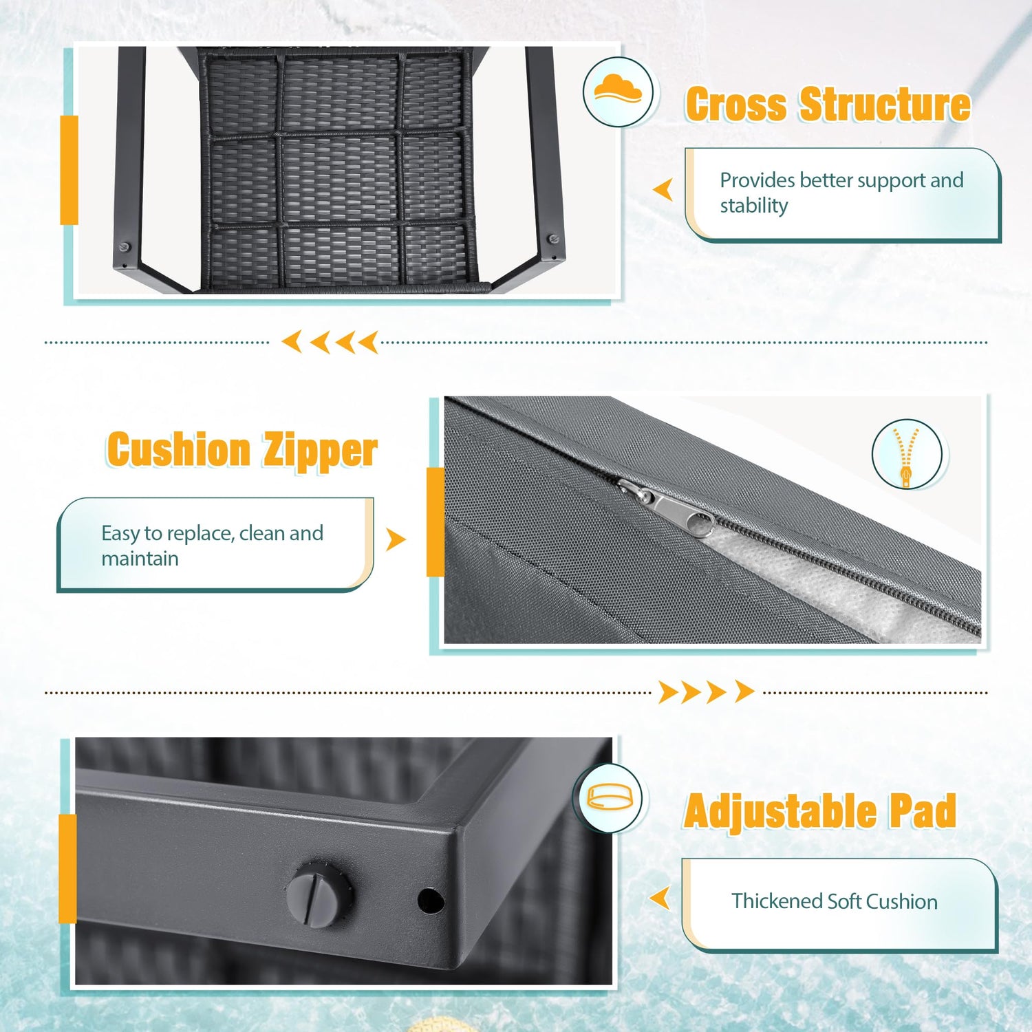 - Sturdy & Strong: The powder coated steel frame are rust-proof and high-quality hand woven weather-resistant PE wicker won't fade.Each seat supports up to 250 pounds.