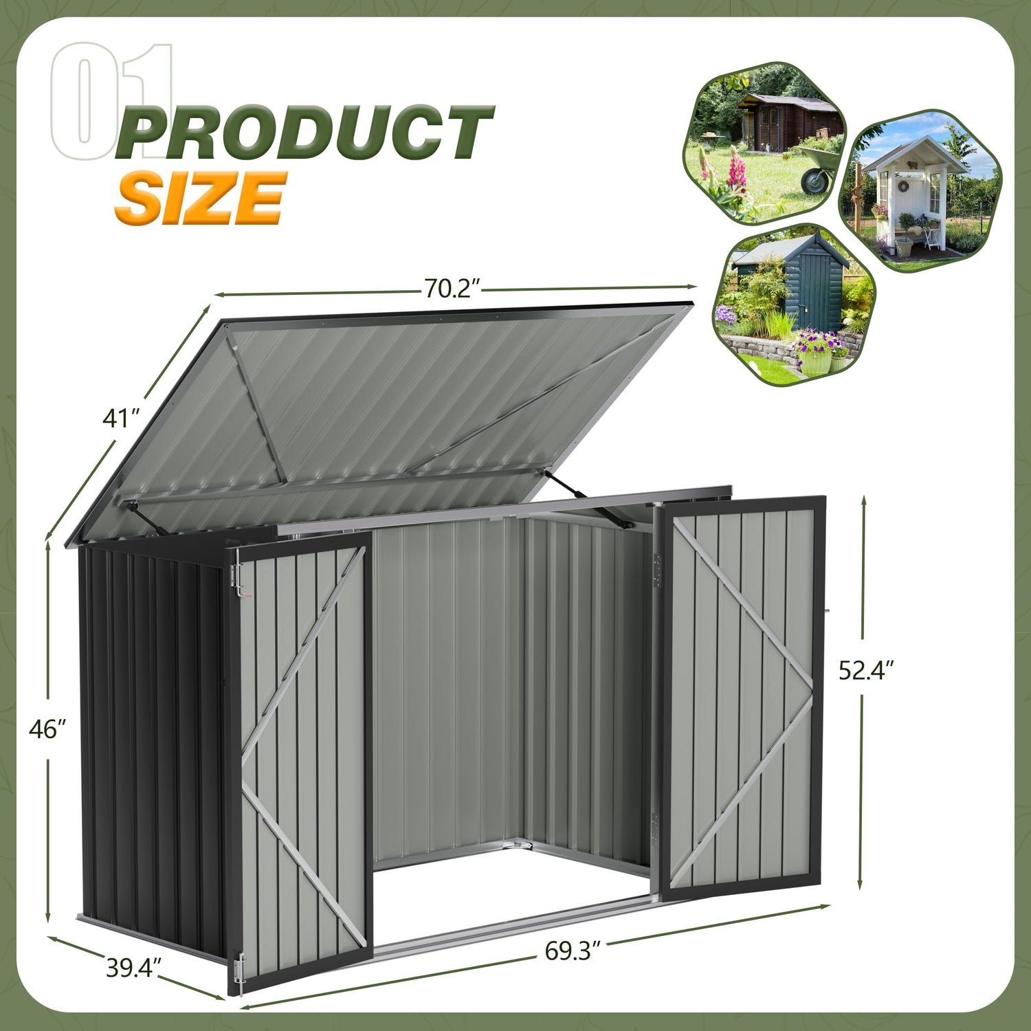 Flamaker 5.8 x 3.3 FT Storage Shed Outdoor Metal Trash Can Shed with Hydraulic Gas Rod Lockable Garden Tool Shed for Backyard, Lawn, Roadside