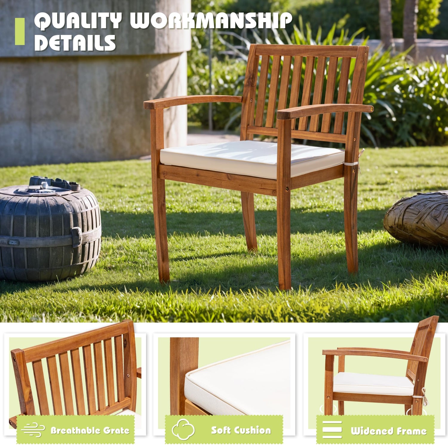 Natural Acacia Wood outdoor dining set, solid material with simple appearance suitable for your indoor outdoor scenes like poolside, lawn, balcony. Perfect for chatting with the family or having a drink with friends, this patio dining set is ideal for spending leisure time outdoors.