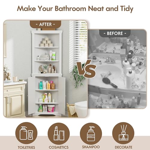 - 【Wide Range of Applications】This storage cabinet is suitable for a variety of scenarios such as bathroom, living room, bedroom or kitchen. Whether you are looking for a convenient storage solution to organize your bathroom supplies or a beautiful and practical corner cabinet to decorate your living room or bedroom, this corner cabinet can meet your needs.