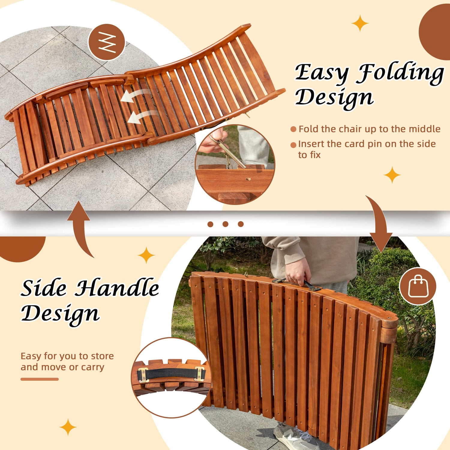 Flamaker Lounge Chairs for Outside Folding Acacia Wood Chaise Lounge with Side Handle Sun Lounger for Poolside, Lawn, Backyard (2 Piece)