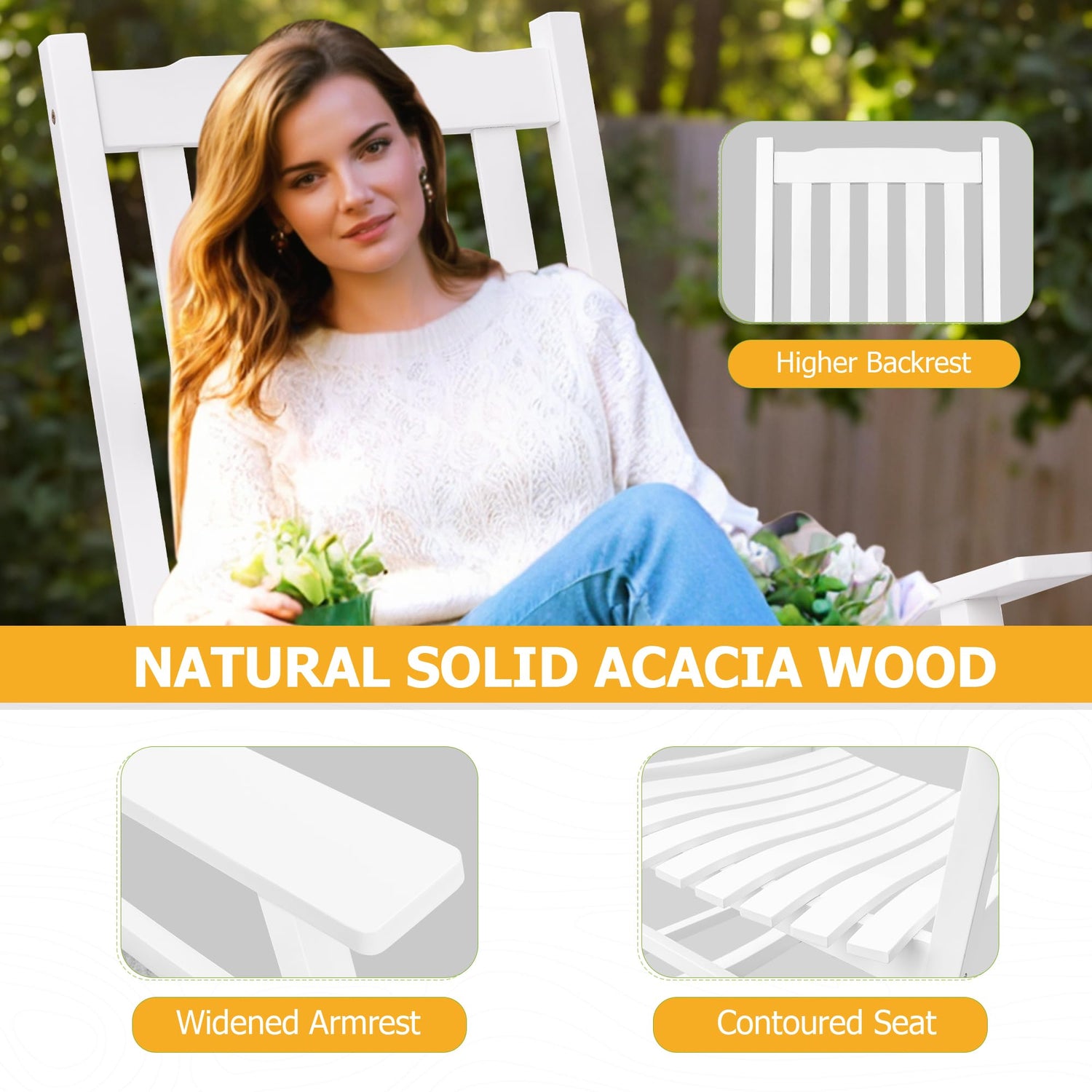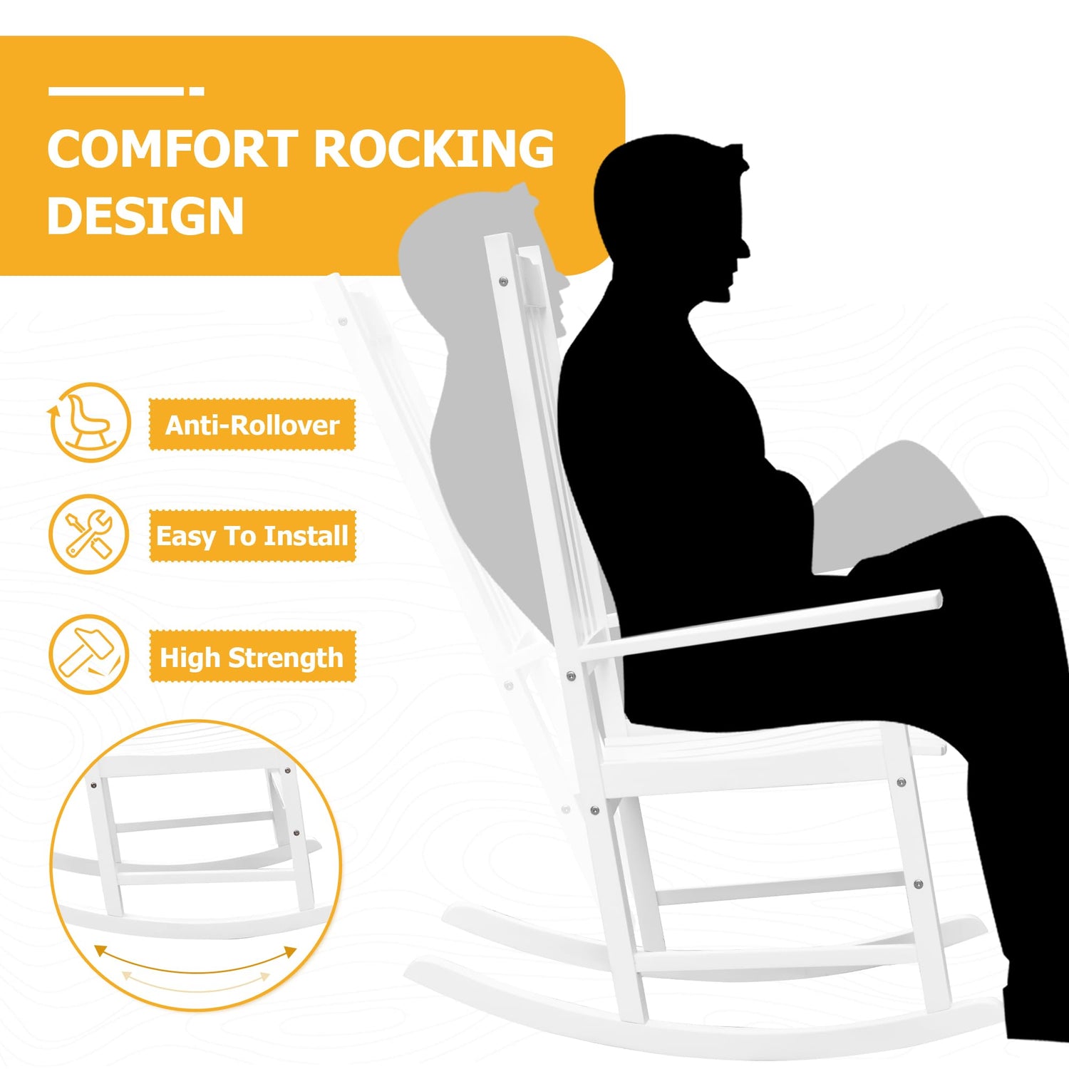 Flamaker Outdoor Rocking Chair Oversized Wooden Patio Chairs with Widened Armrest High Back Porch Rocker for Lawn, Garden, Backyard, Fire Pit (White)