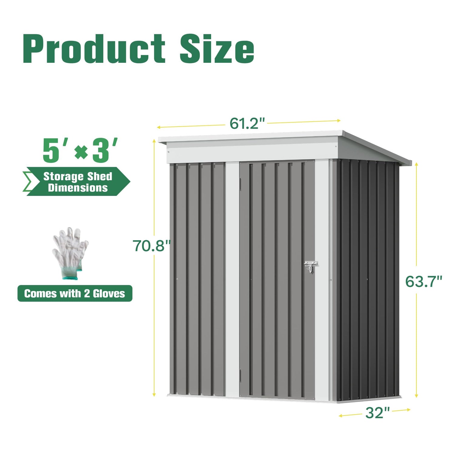 Flamaker Storage Shed Waterproof Metal Garden Shed with Lockable Door Utility Tool Shed Outdoor Storage for Backyard, Patio and Lawn (5 x 3 FT, Grey)